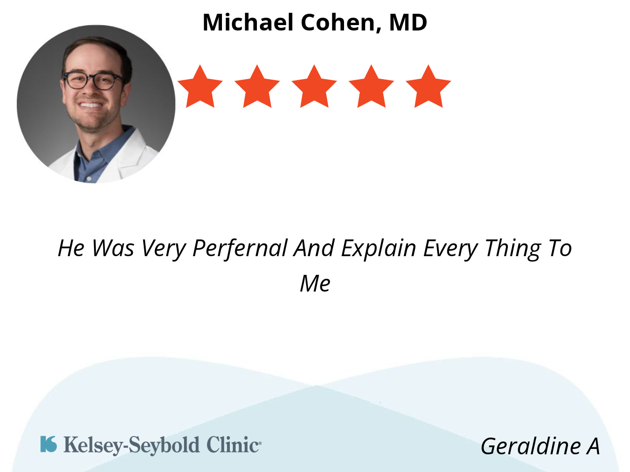 His Nurse is Also an asset to his team...Professional, and Caring!