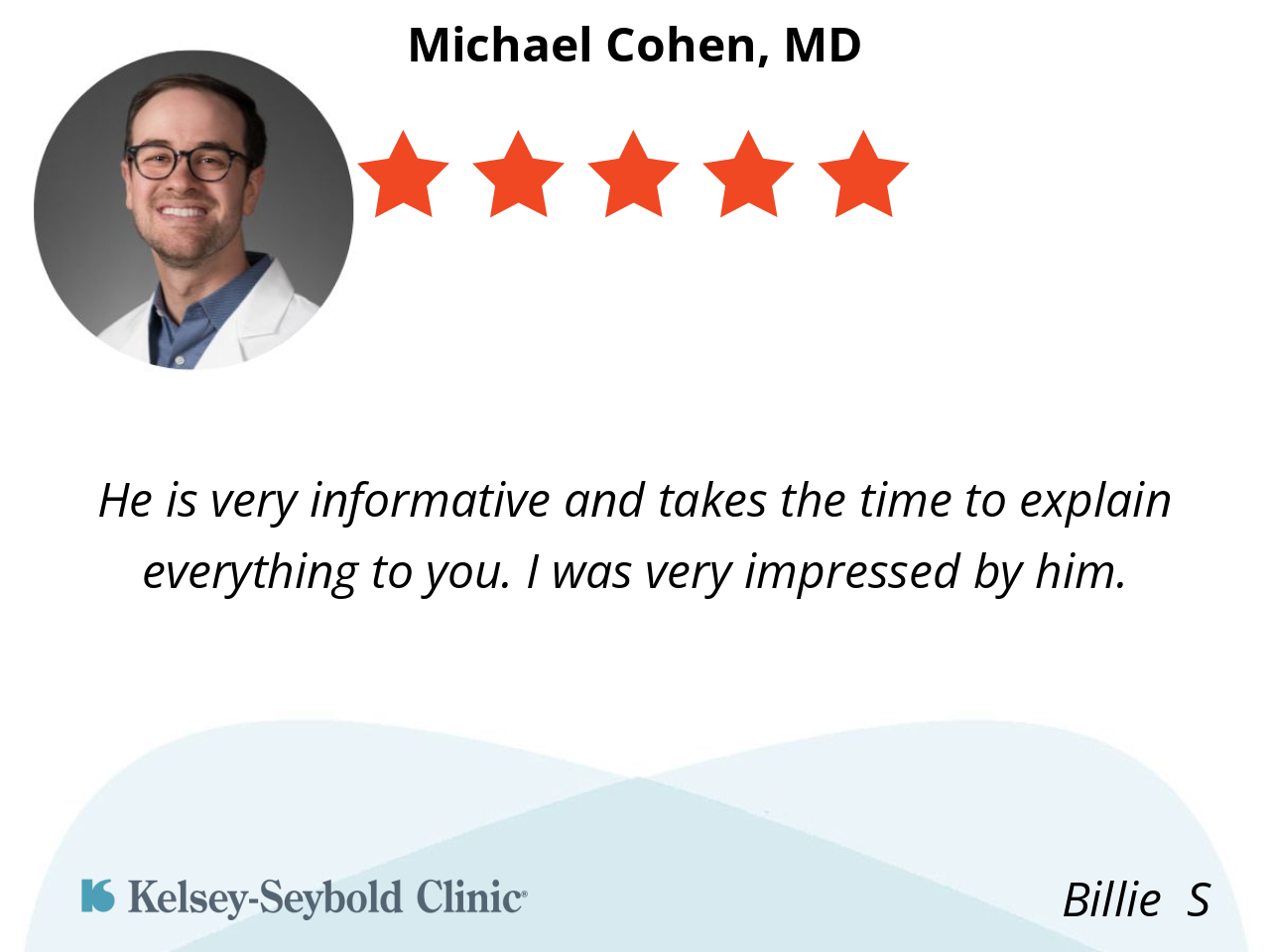 Dr. Cohen was a pleasure to work with. He explained everything about the procedure so I could understand it. His staff was kind, prompt and friendly.
