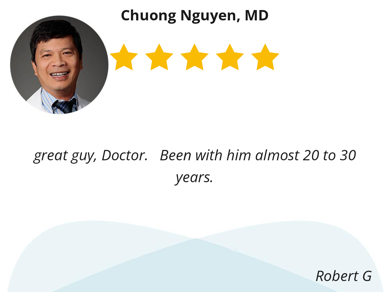 Dr. Nguyen has been my doctor for 36 years. He is always professional and thorough..
