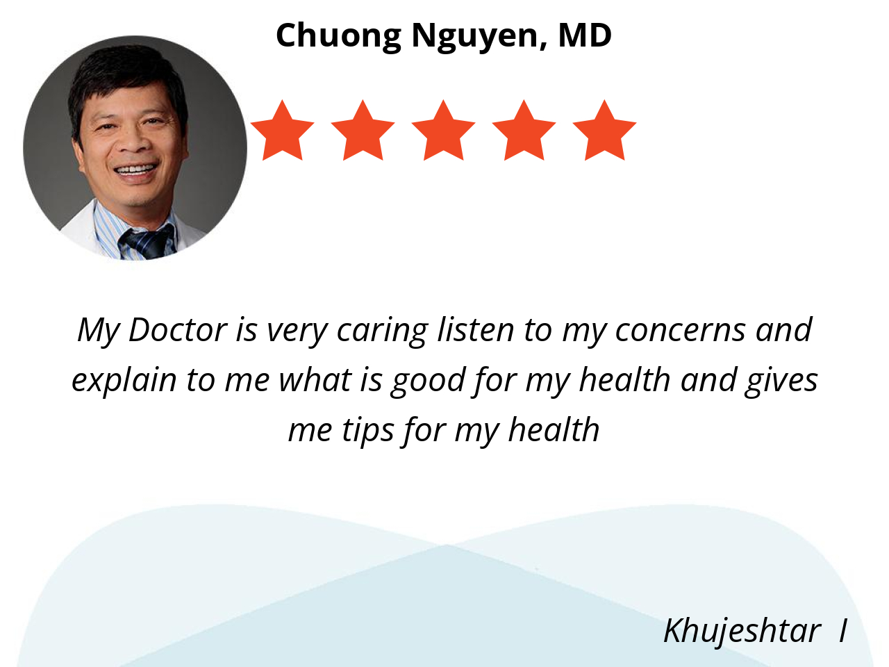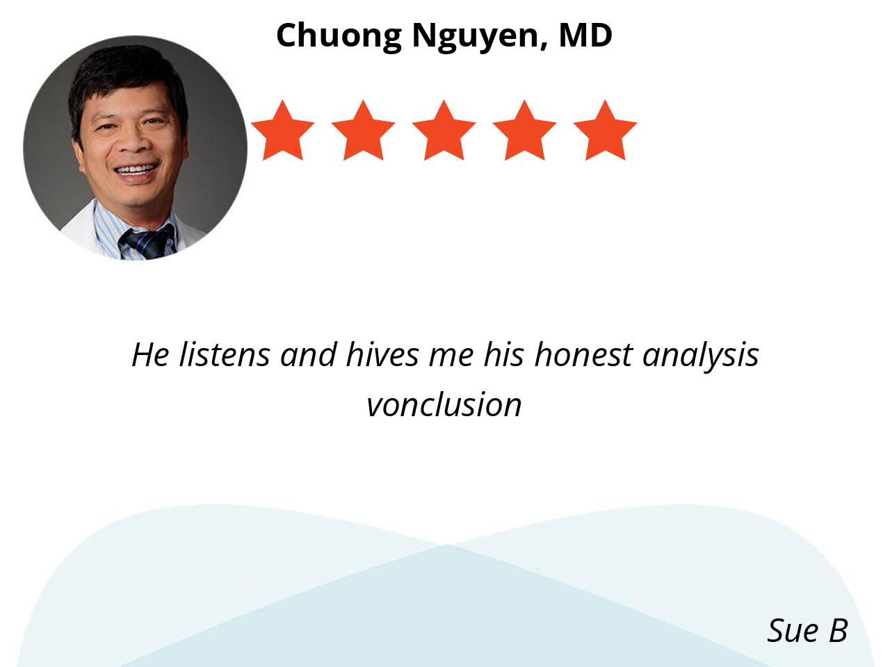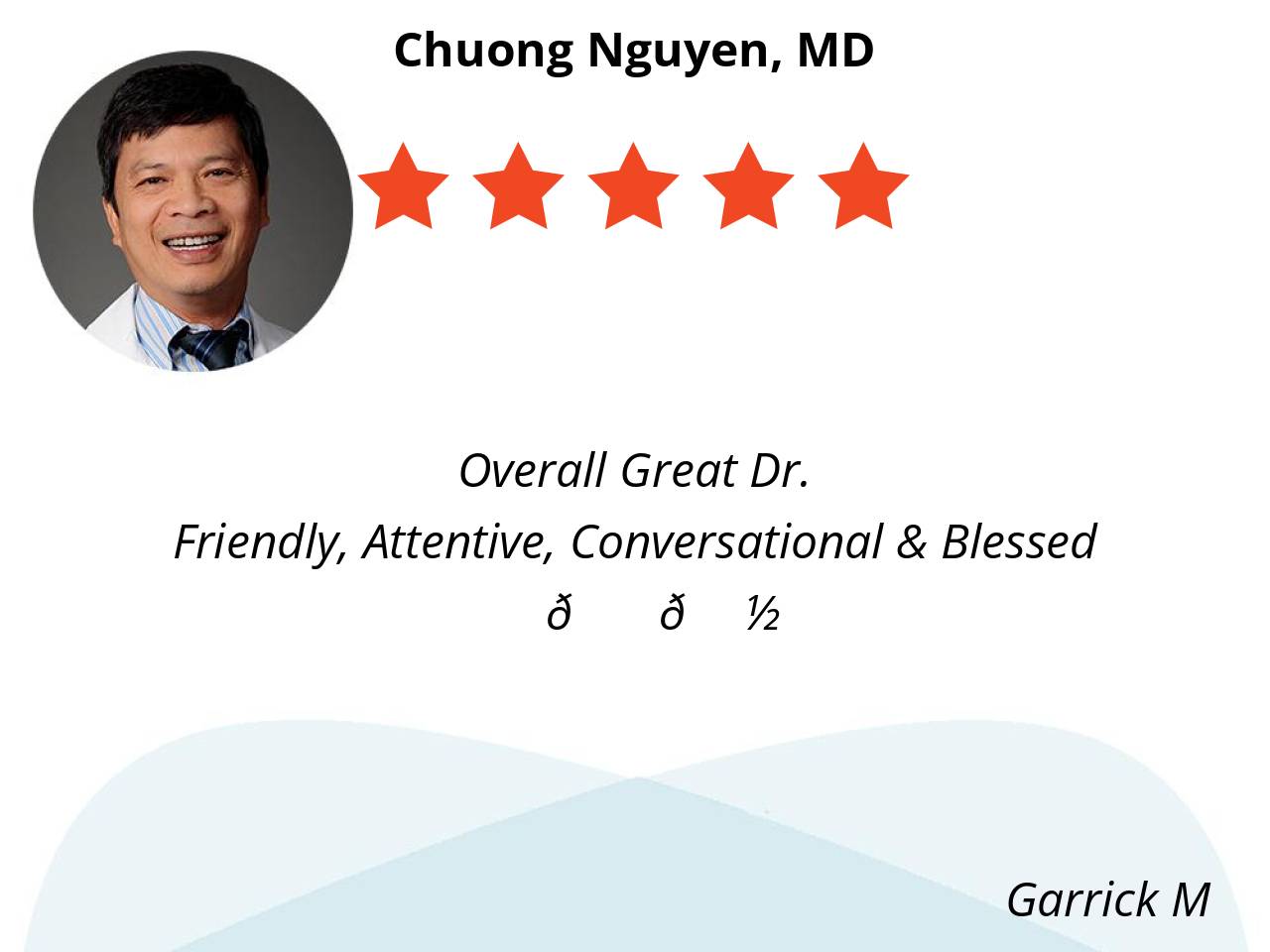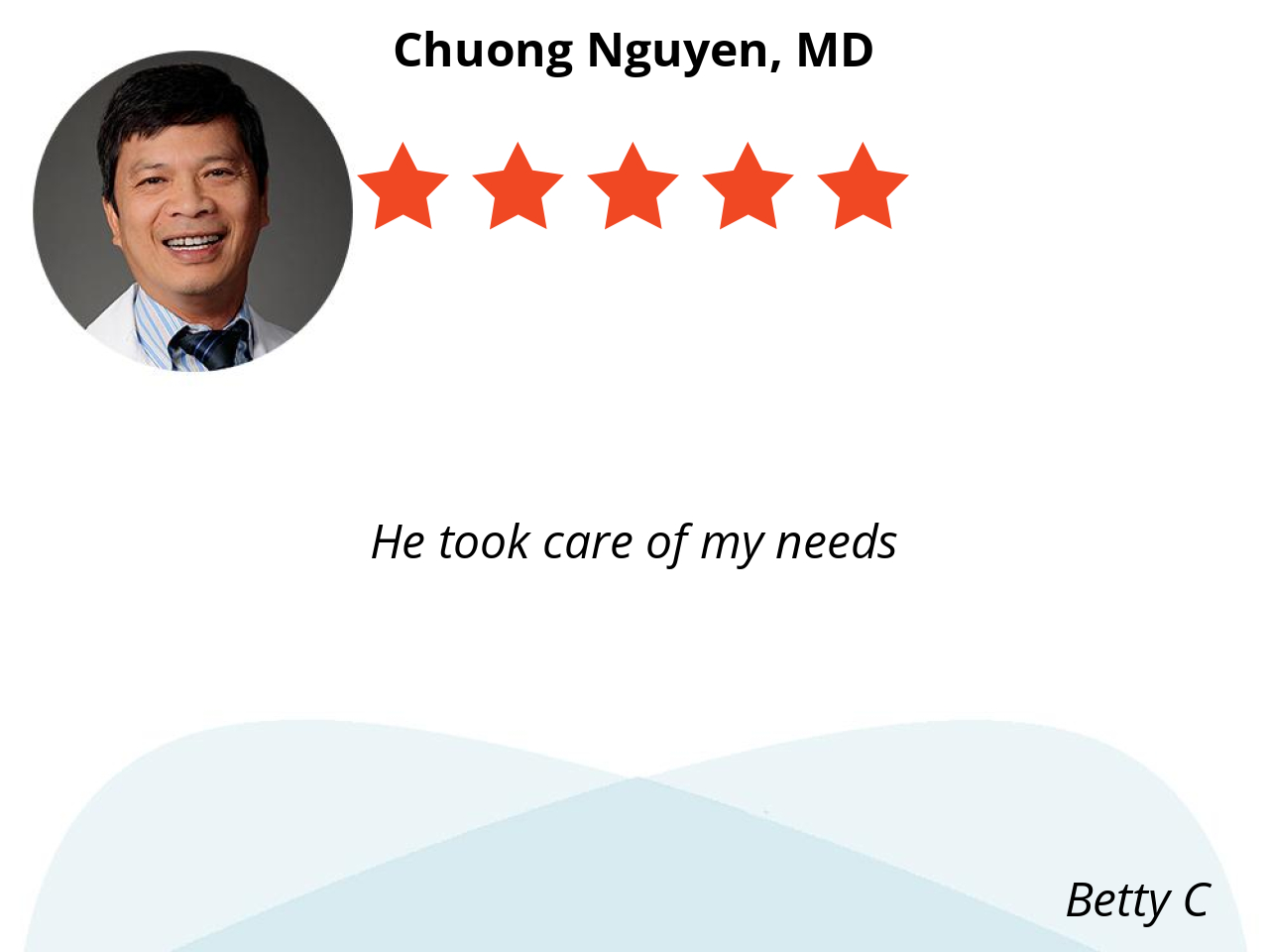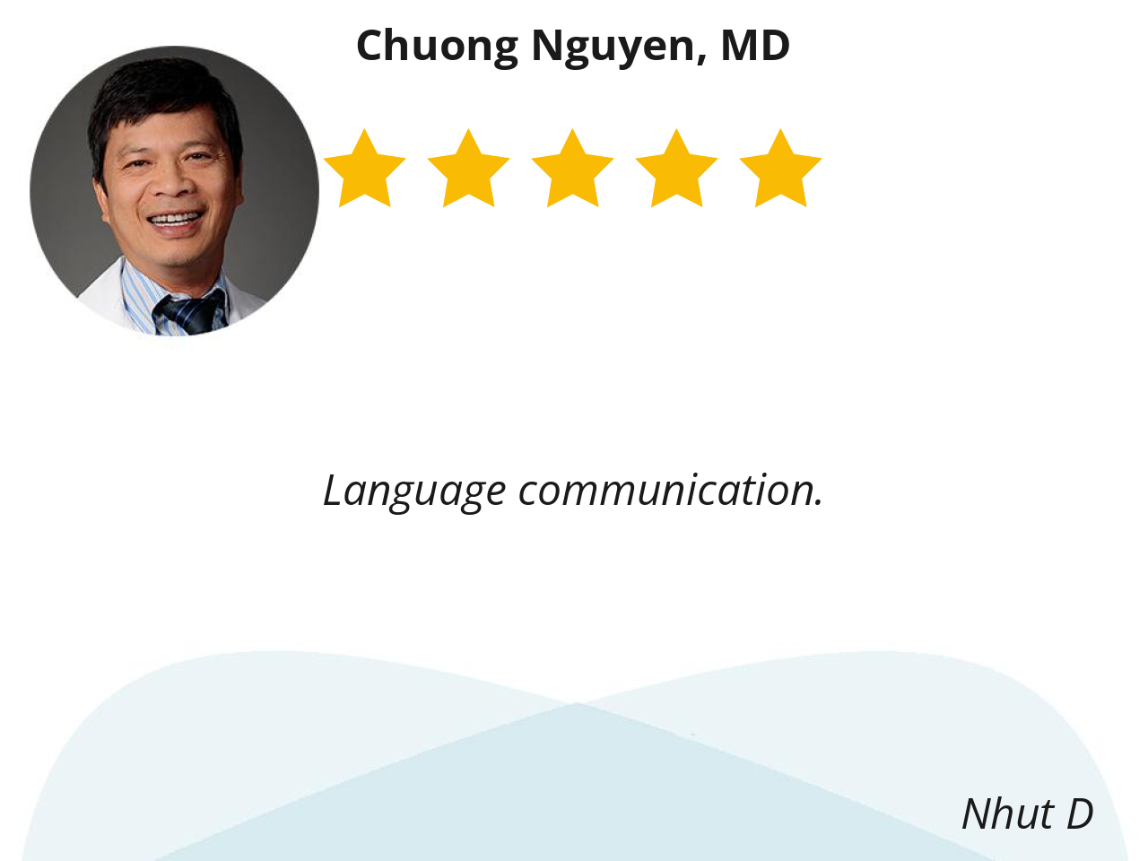 Dr Nguyen is the most kindest and sincere doctor I’ve been to. He very knowledgeable and listens to my concerns.