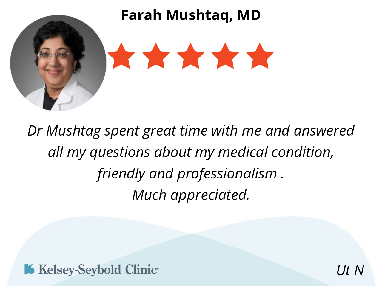 Dr Mushtag spent great time with me and answered all my questions about my medical condition, friendly and professionalism .
