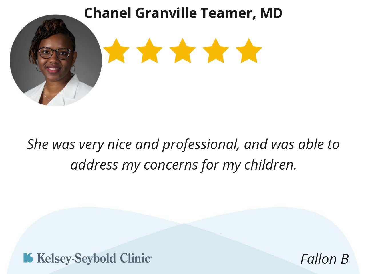 She was very nice and professional, and was able to address my concerns for my children.