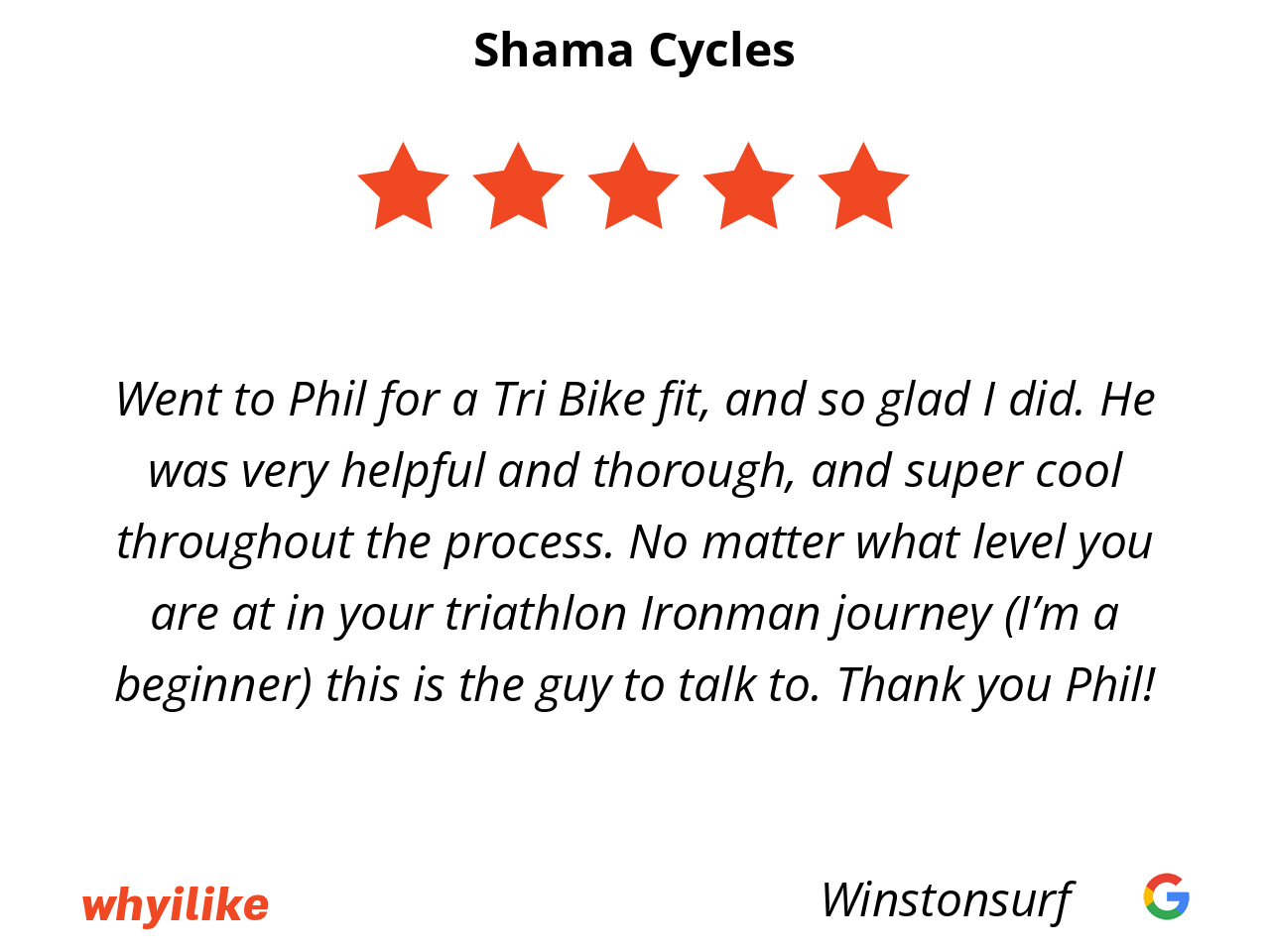Phil and his team are the best in the business. Truly. I walked into his store the first time not knowing anything about cycling or bikes. I was overwhelmed and worried that someone would take advantage of my lack of knowledge. I owned a road bike from 2018, but that was about it. I’d begun training for an Ironman about 6 months prior (never cycled or done anything other than a sprint tri 6 years prior), and knew I needed to make some changes on my bike but wasn’t sure how much money to spend on a bike or parts or anything. Multiple people I trust who are cyclists and triathletes said that Shama is the only person they would go to and they trusted him implicitly-and they were right! I did a bike fitting with Phil, and he was incredibly patient (and trust me, I’m picky!..or as he says “discerning” :)). He took the time to make sure that every aspect of the bike was comfortable. He adjusted my brake hoods, changed my stem, and changed and adjusted my saddle and seat post. He switched out my pedals and clips, and we changed my crank length and installed a power meter. Afterwards, I rode the bike or a few weeks and if I felt like it needed adjustment, he welcomed me back and made some tweaks. He truly wants his customers to feel as comfortable as possible on the bike. And let me tell you, I didn’t know that riding a bike could be so comfortable! Every switch he made was a game changer for me. He also made sure to fully explain to me the cost/benefit of each part being switched out and made it cost-effective for my specific budget and needs. He took his time explaining the pros and cons of a new bike versus my current one, various bike parts that could be switched out and upgraded later, and fully left the decision in my hands without pressuring me to spend money I didn’t want to spend. He gave his honest opinions when asked, and his recommendations truly were based on my needs and wants, and not what would make his business the most money. He’s the definition of honesty in business and puts his customers above anything else. Phil and his team are passionate about what they do. They love cycling and they want you to love it too. I’ve met so many people in the store who have been long time customers of Phil’s and they all say the same thing. From people on racing teams to beginners, he treats everyone the same and is always offering the best service possible. I’ll never go anywhere else for bike parts, gear or even a new bike (because, let’s face it, we all know I’m buying a tri bike eventually from him…how could I not?! The enthusiasm there for cycling is contagious!).