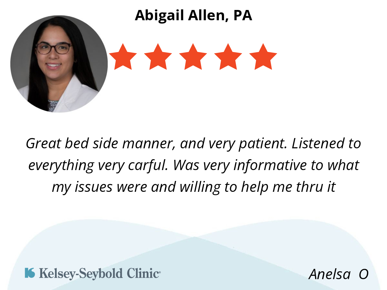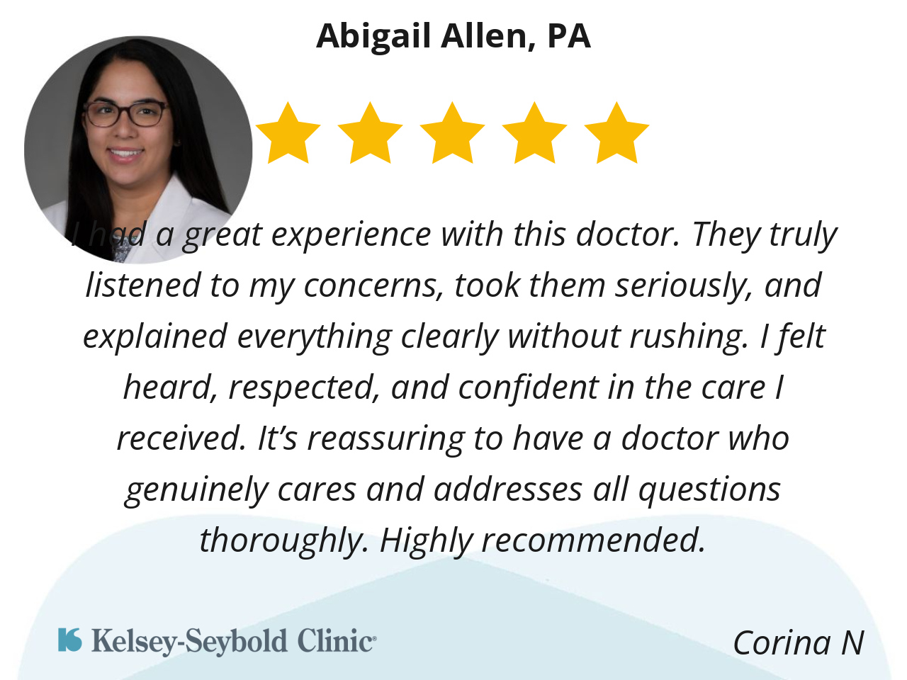 PA Allen was courteous, professional, and knowledgeable. She was able to provide the information I needed and her demeanor put me at ease.