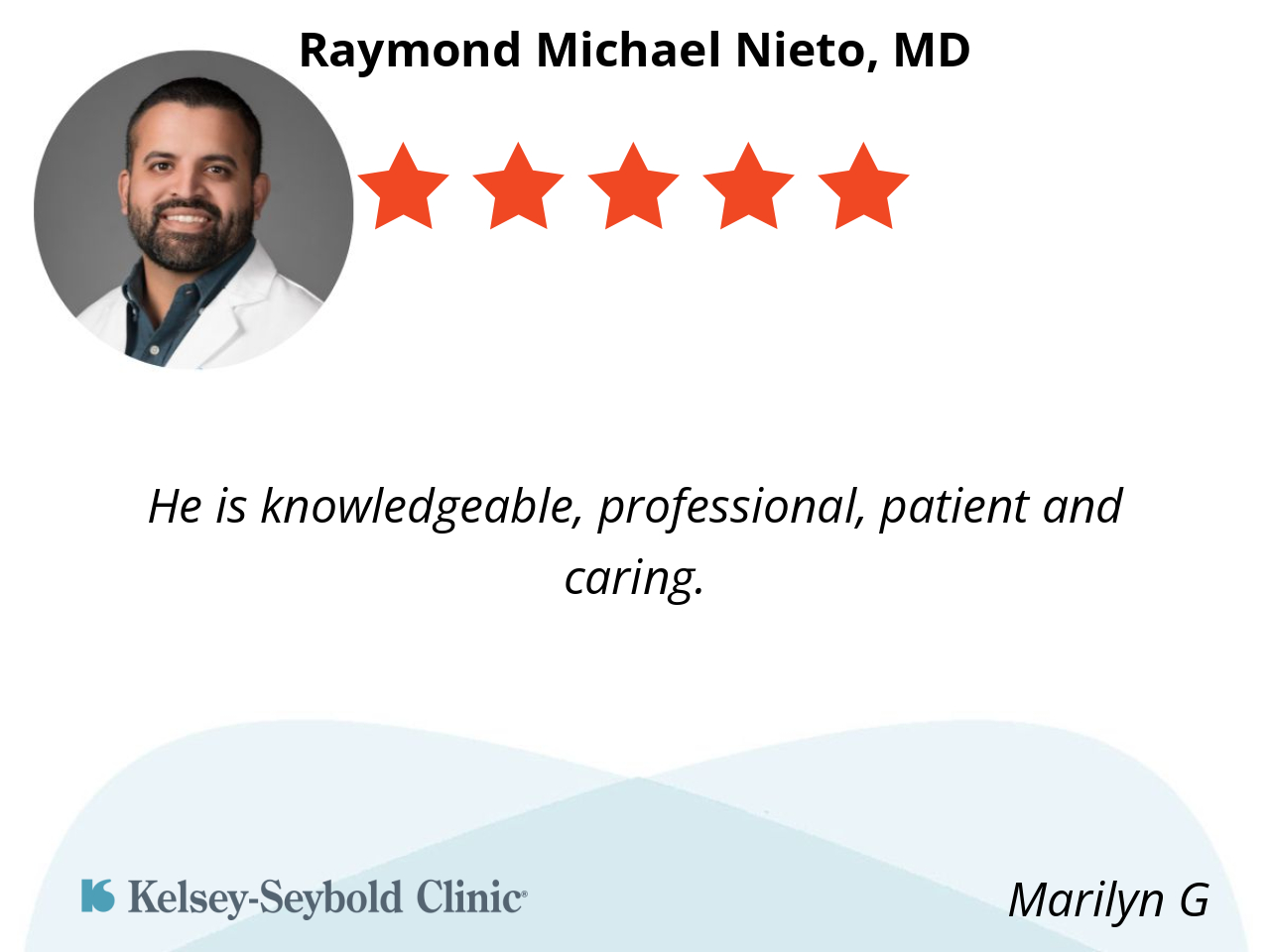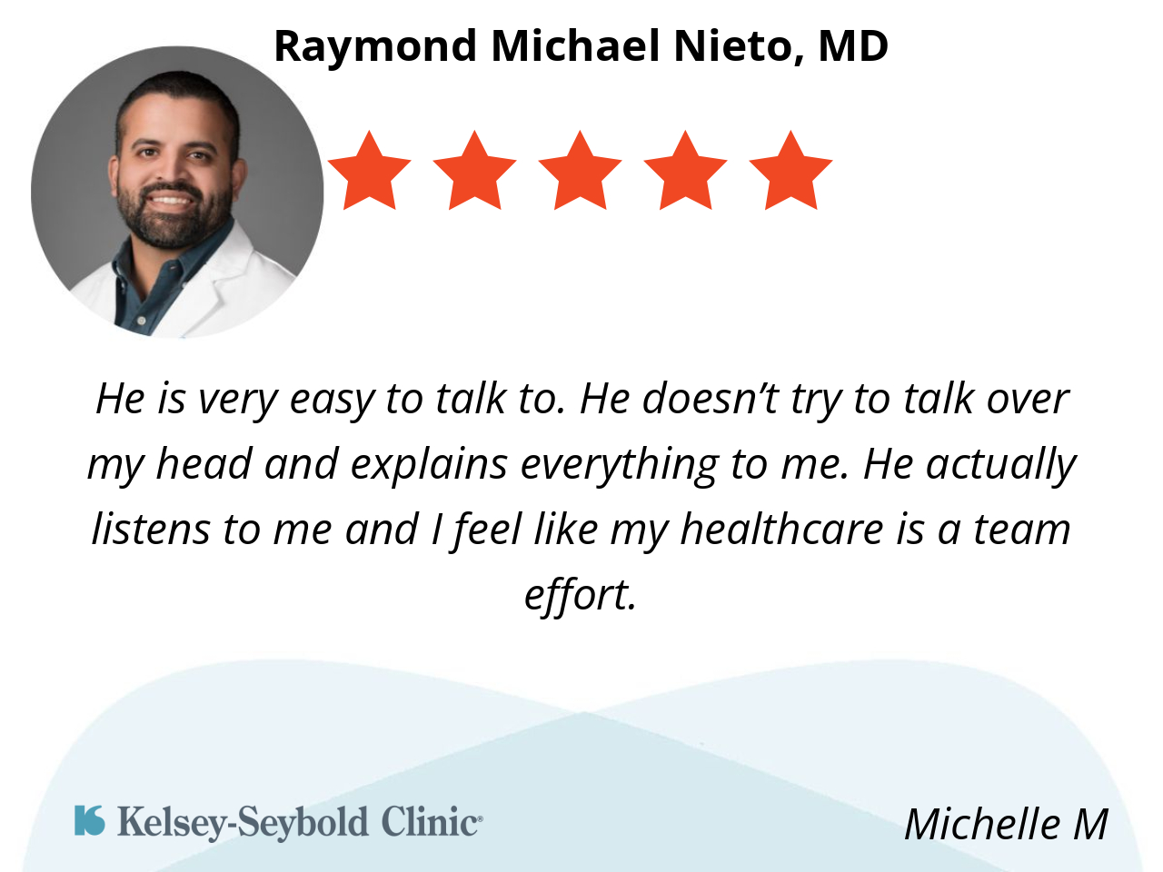He is very easy to talk to. He doesn’t try to talk over my head and explains everything to me. He actually listens to me and I feel like my healthcare is a team effort.