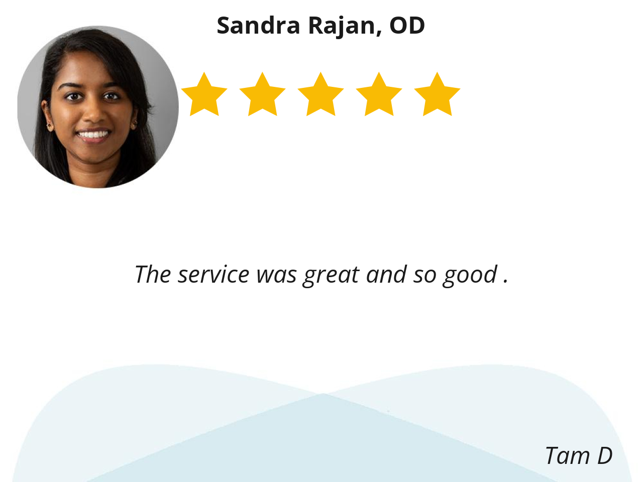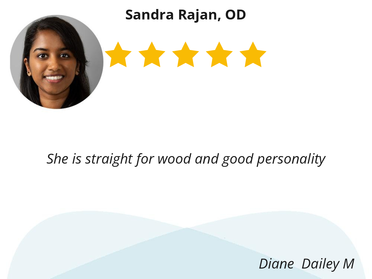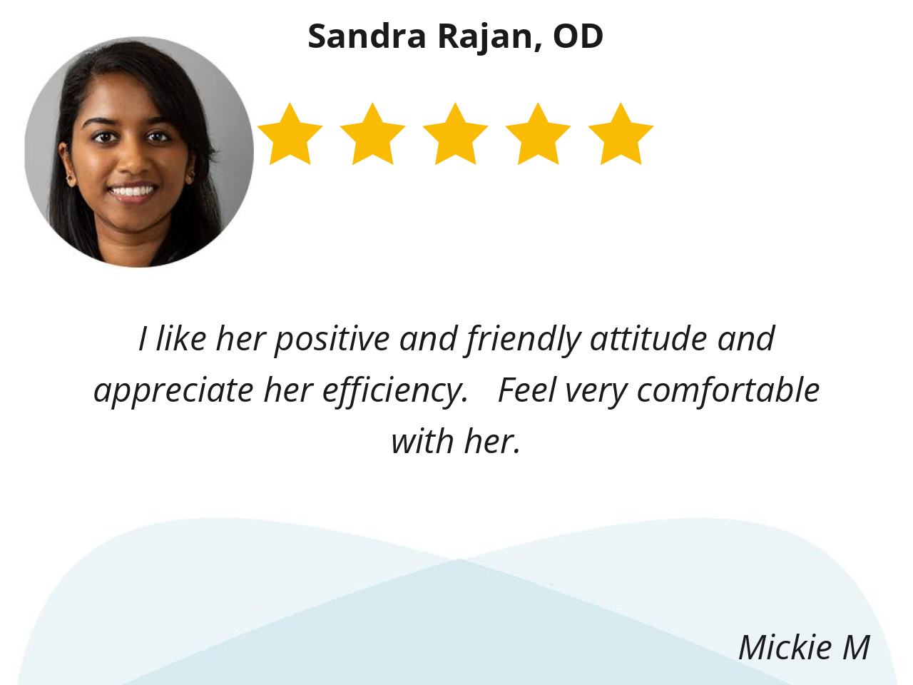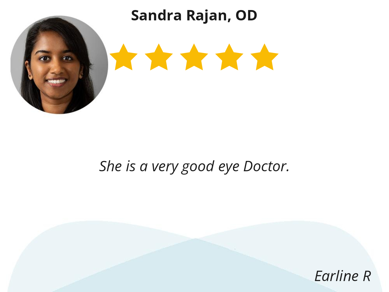 Dr.Rajan conducted a very thorough eye exam and explained her findings to me so clearly. Her experience and expertise made me feel comfortable to be under her care. she is a good listener with wonderful manners and answered all my questions regarding my health condition.