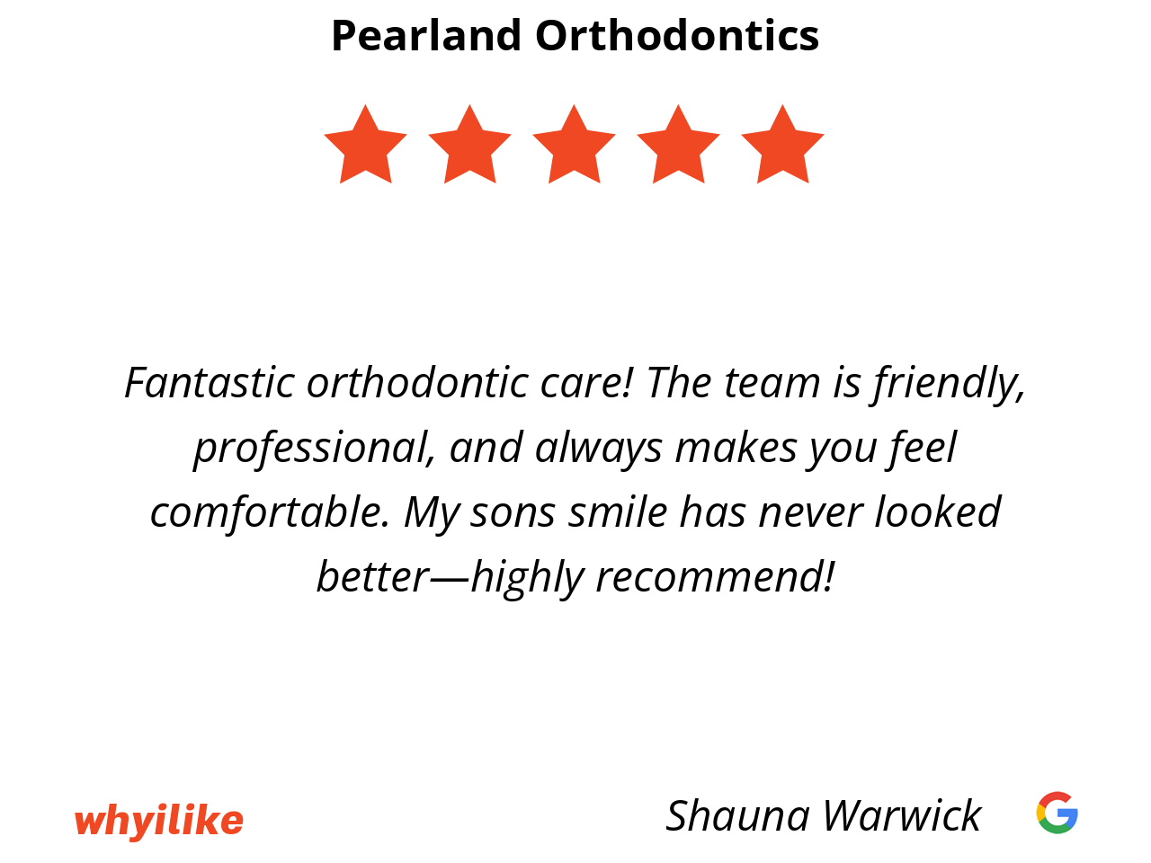 Fantastic orthodontic care! The team is friendly, professional, and always makes you feel comfortable. My sons smile has never looked better—highly recommend!