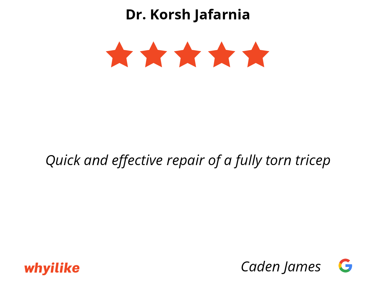 Dr. Jafarnia is an exceptional surgeon! He performed a complicated wrist surgery on my son, and the results were AMAZING. The surgery was a complete success, and we are beyond grateful for his expertise and care. Not only is he a highly skilled professional, but he's also a genuinely kind and compassionate person. We couldn’t have asked for a better experience. Highly recommend!