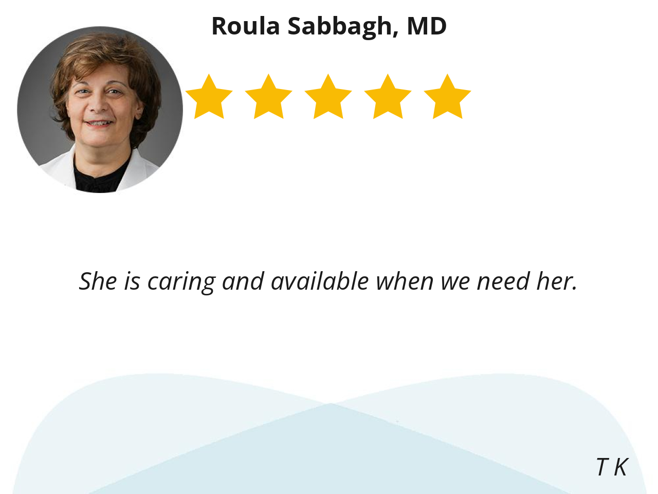 Dr. Sabbagh is a wonderful physician who cares about her patients. We are thankful to have her.