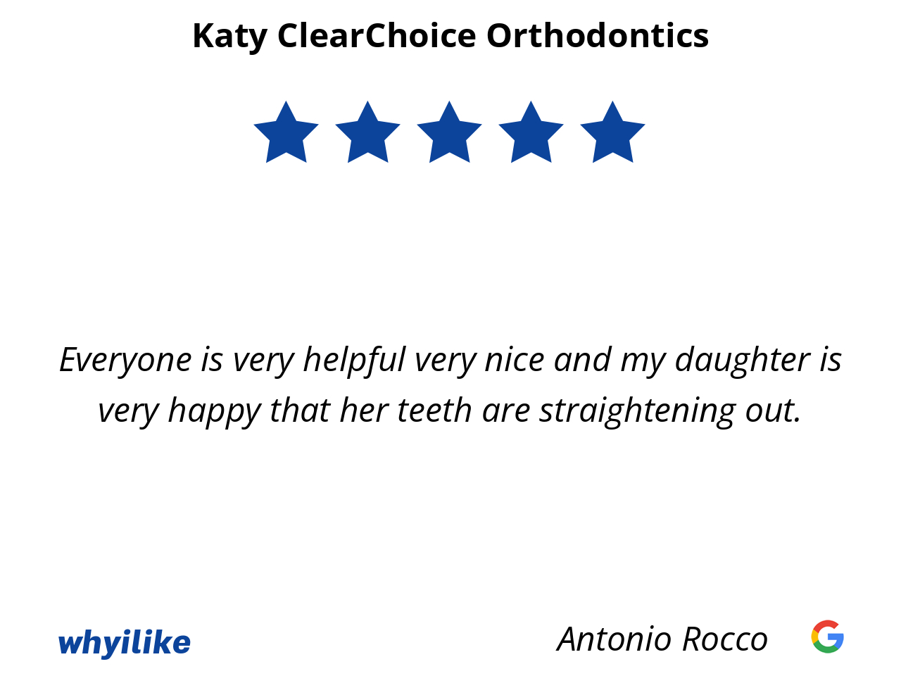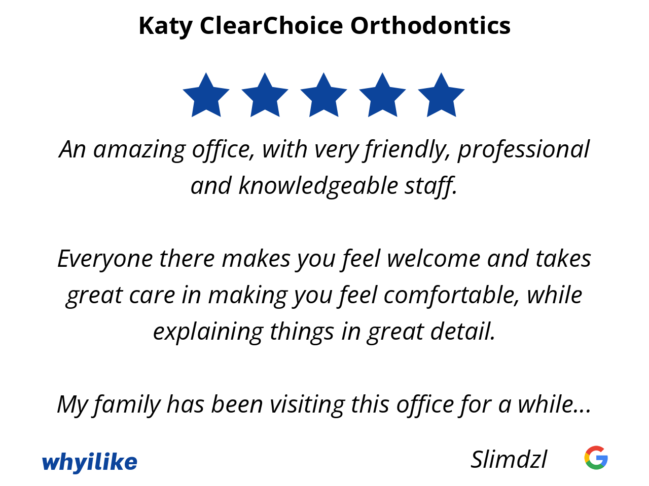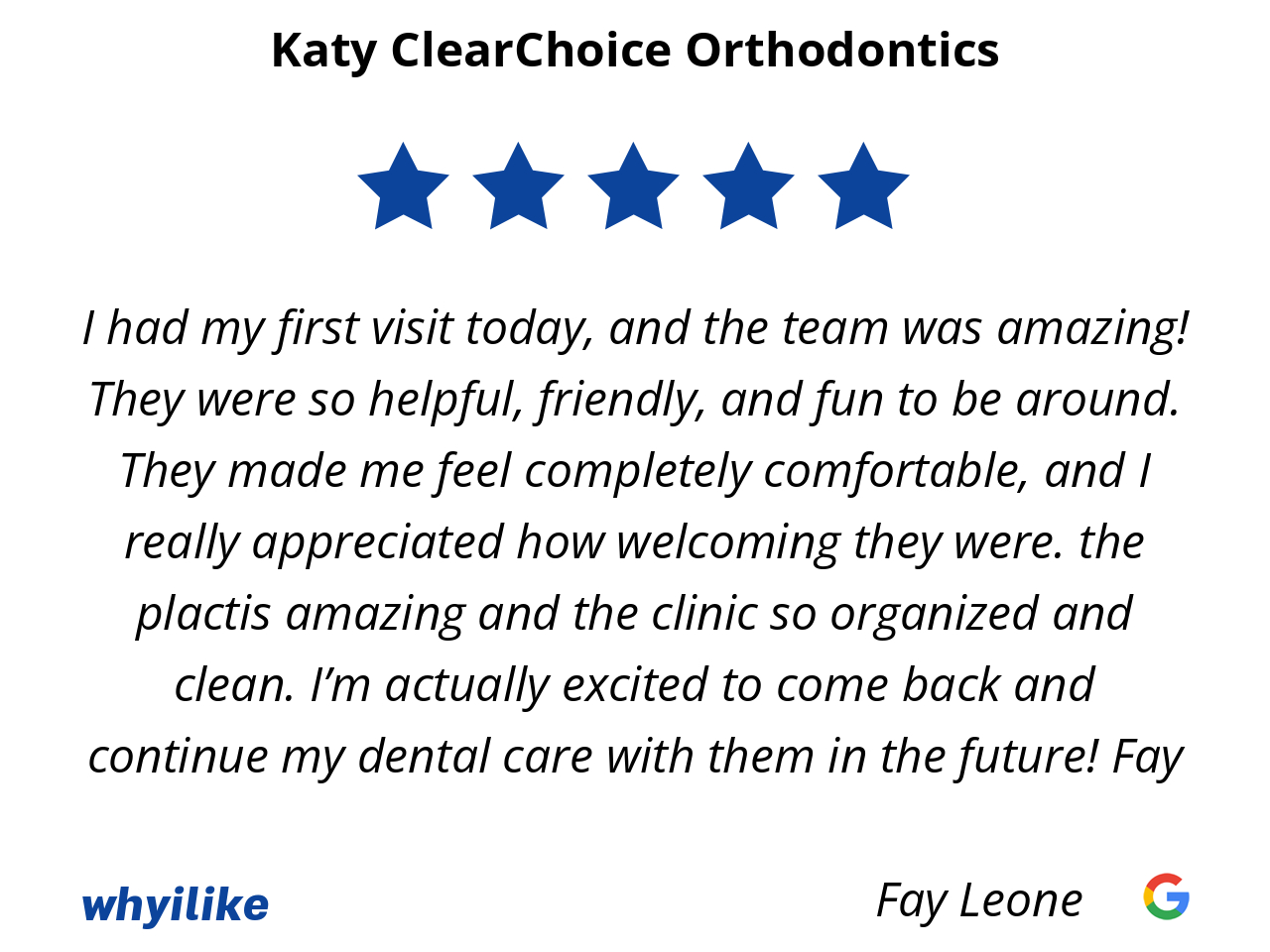 We absolutely love Dr. G and the entire team at ClearChoice Orthodontics! They are so easy to work with, always on schedule, and make every visit smooth and stress-free. They’ve taken such great care of us and always take the time to explain everything clearly. The office is convenient, organized, and everyone there is so friendly. We couldn’t be happier with our experience and highly recommend them!