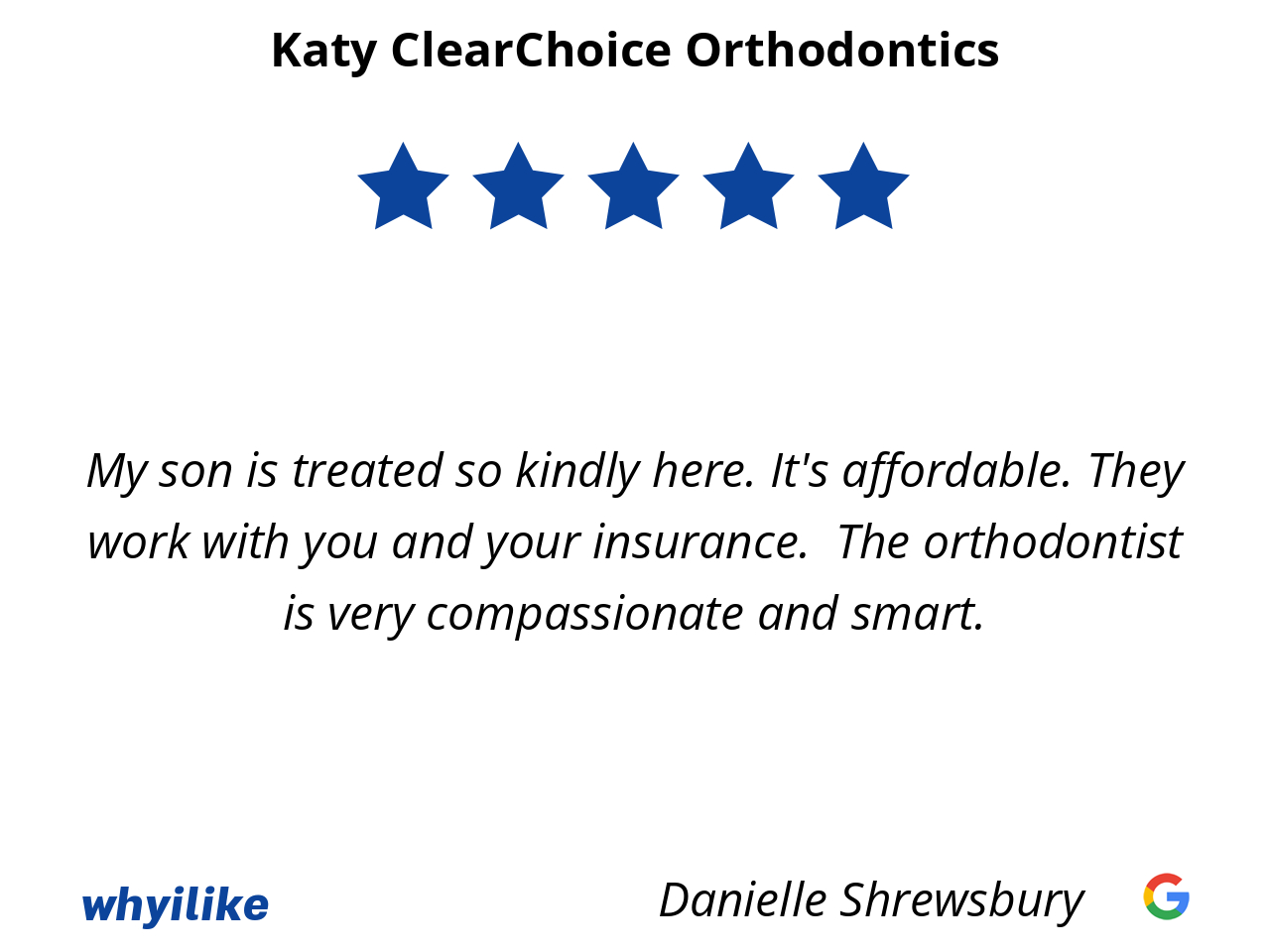 My son is treated so kindly here. It's affordable. They work with you and your insurance. The orthodontist is very compassionate and smart.