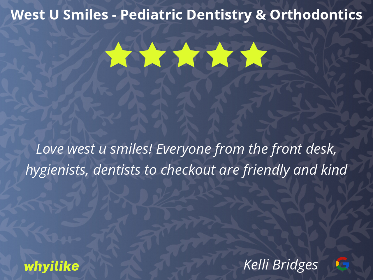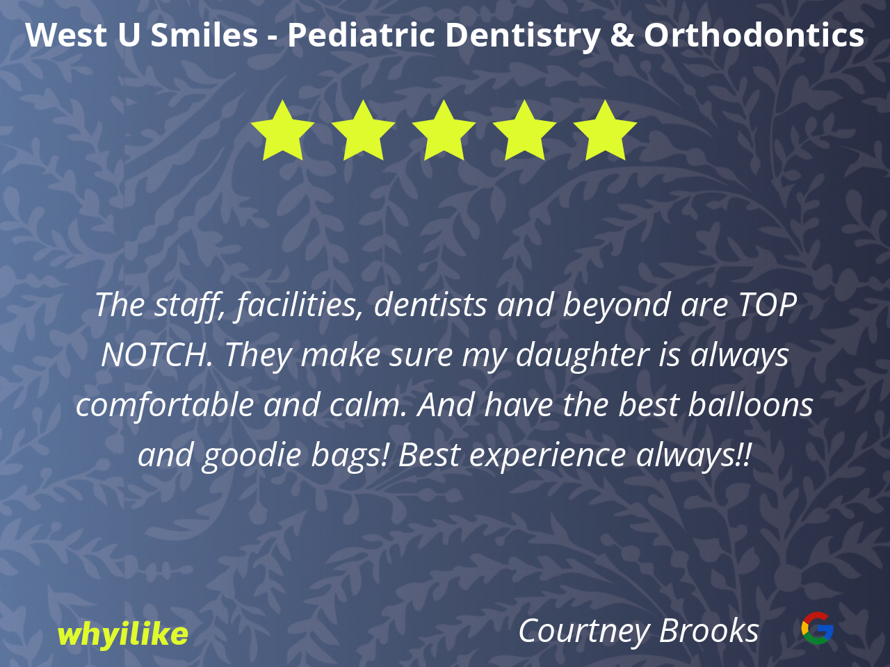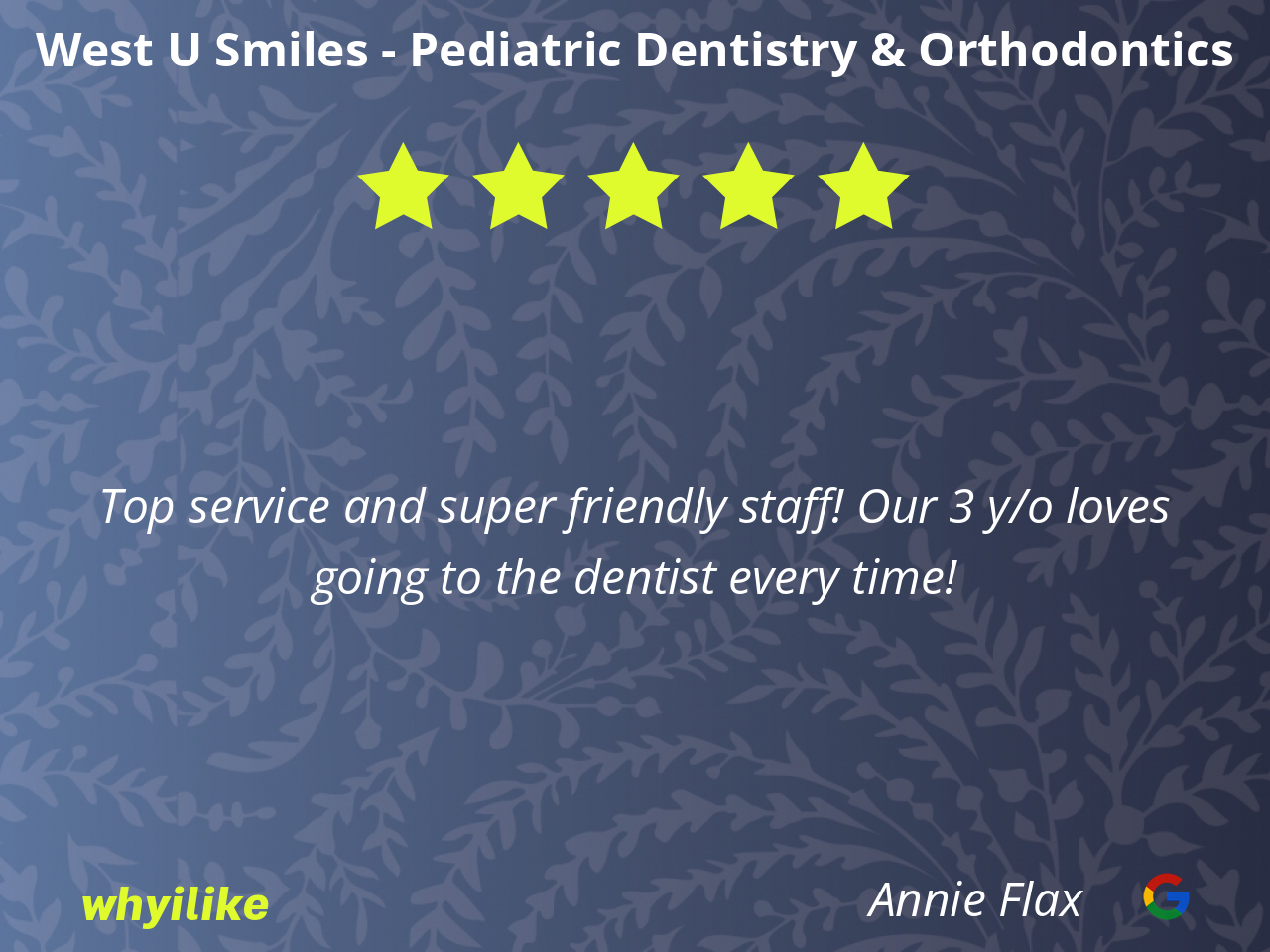 West U Smiles has been a wonderful dental group for my child. I highly recommend them.