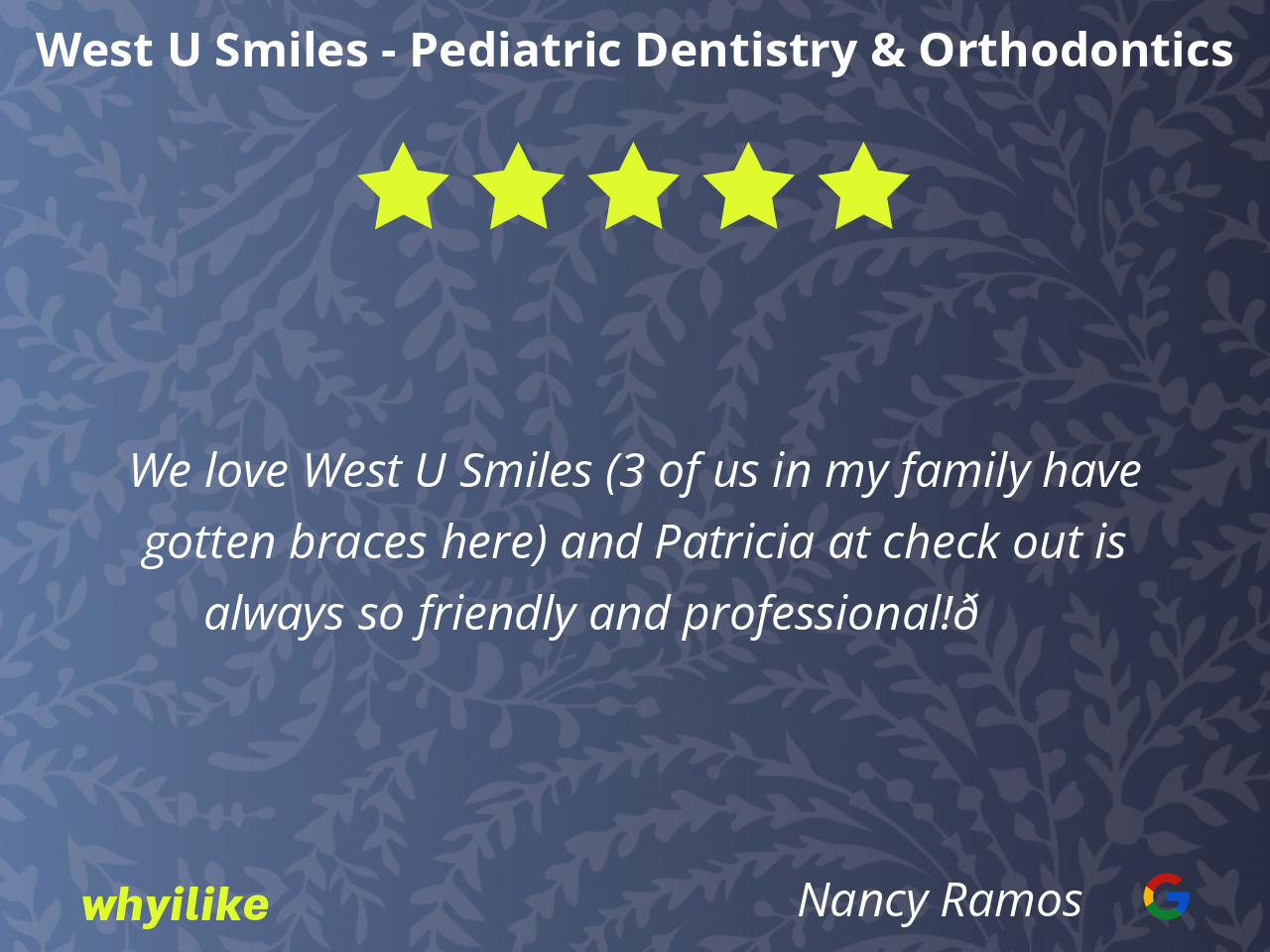 We love West U Smiles (3 of us in my family have gotten braces here) and Patricia at check out is always so friendly and professional!😊