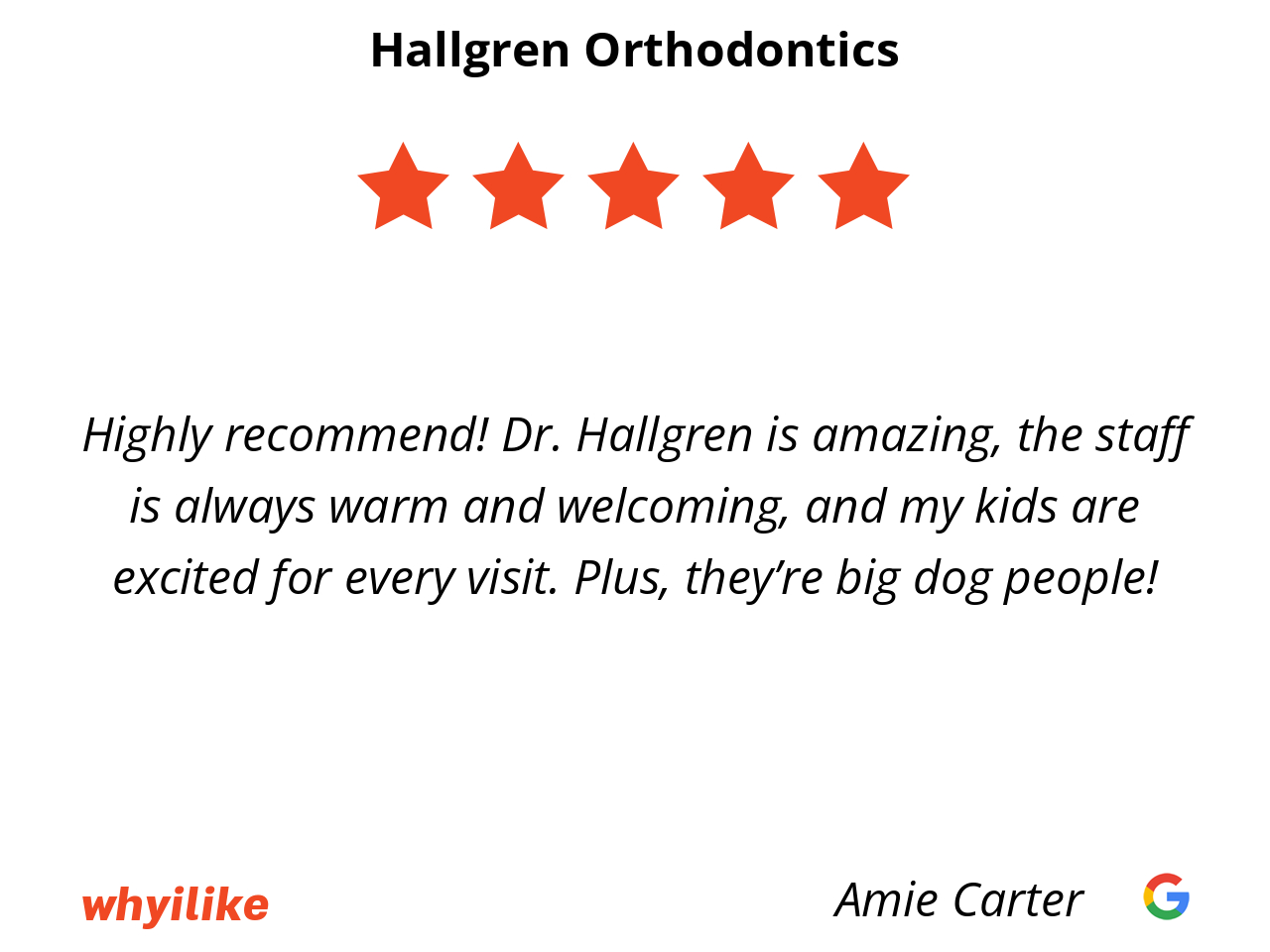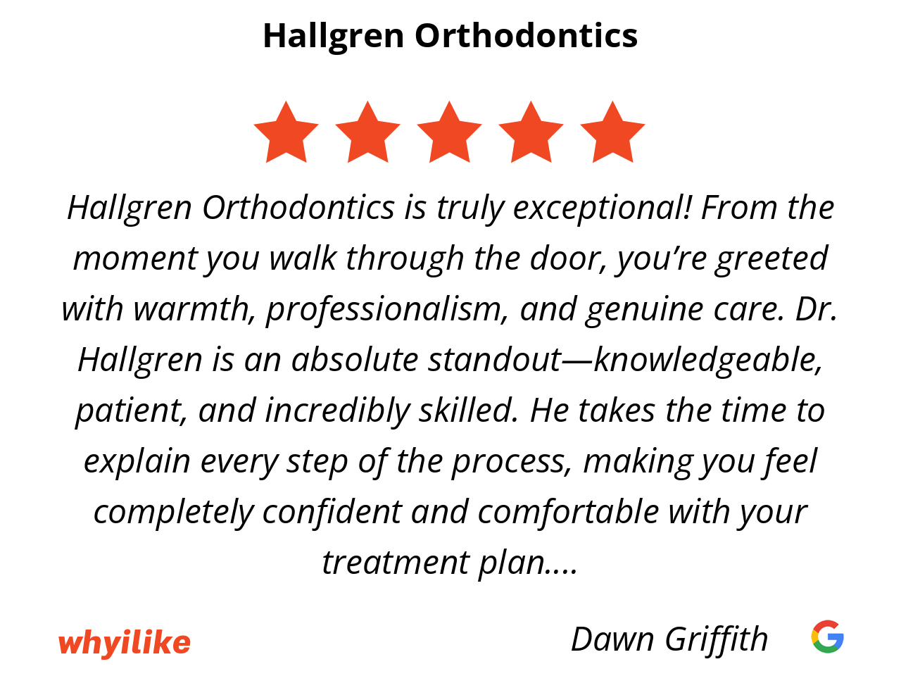 Dr. Hallgren and his staff are beyond wonderful! As a patient and a parent of two kids with braces, I only have great things to say about their quality of care. They put in the time and effort to make you feel comfortable, and the work they do is remarkable. I couldn’t recommend Hallgren Orthodontics more!