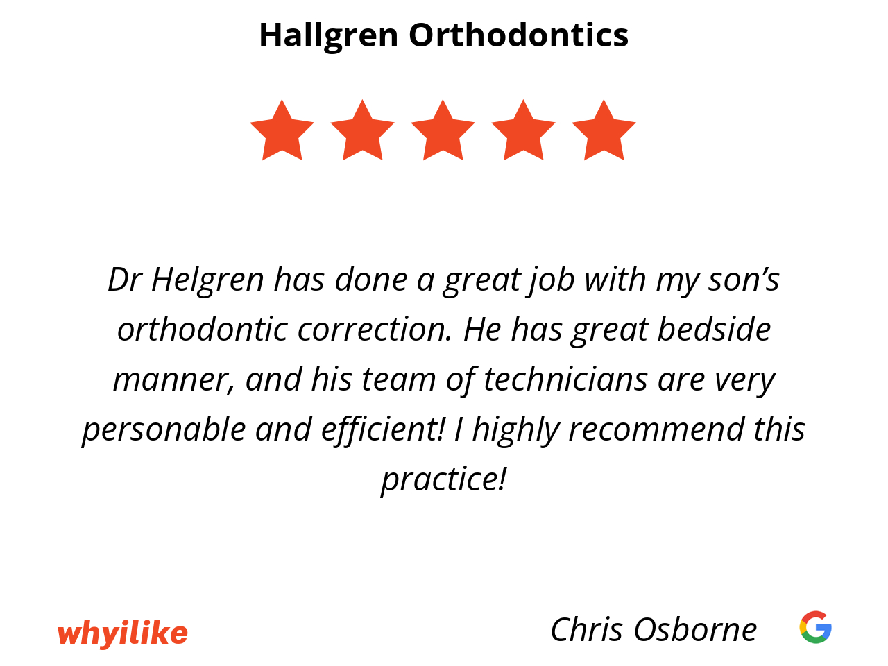 Very impressed with the honesty at Hallgren Orthodontics. They gave us straightforward advice and didn’t try to sell unnecessary treatments. It’s rare to find a practice that puts integrity before profit. Highly recommend