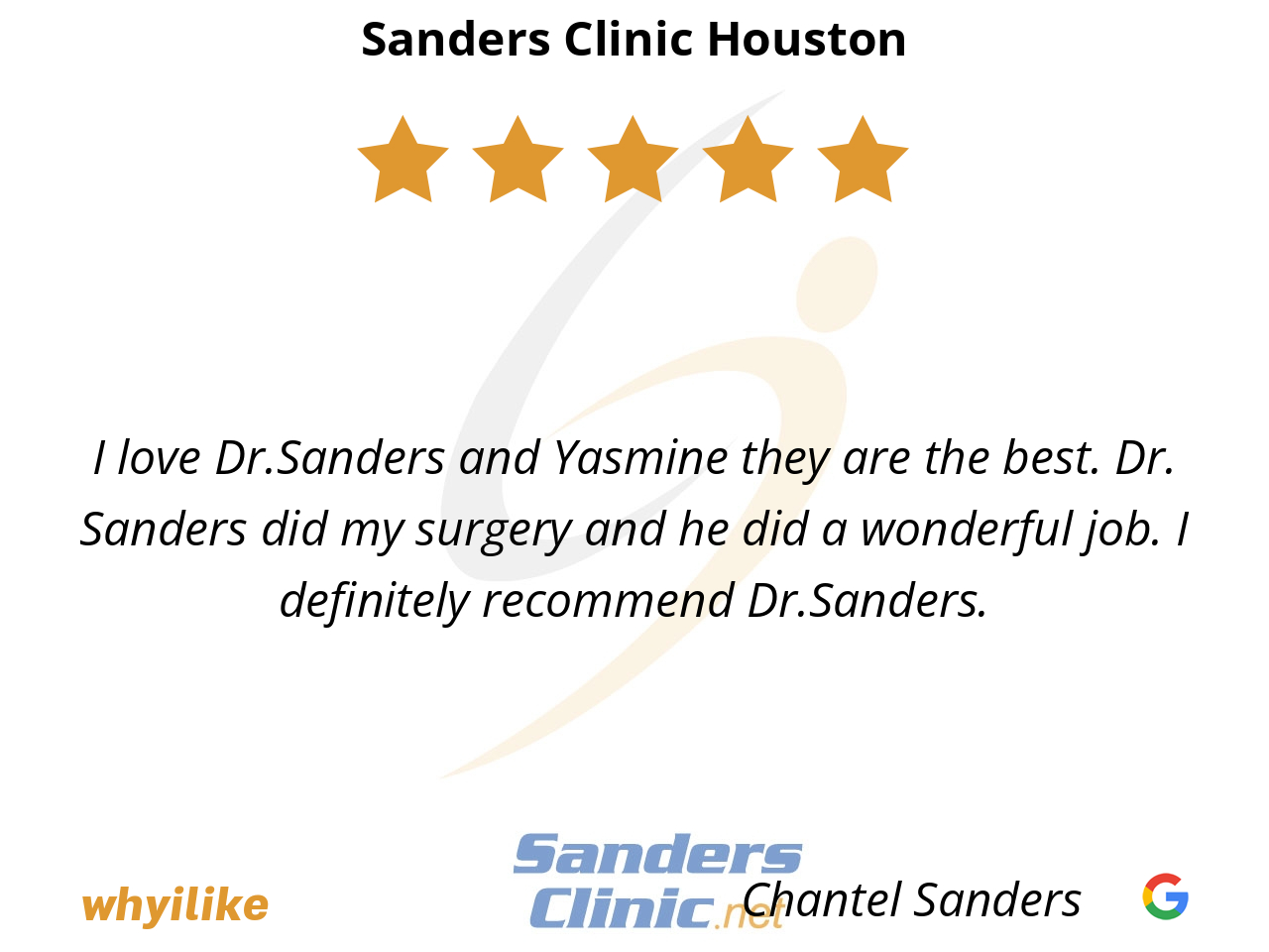 I love Dr.Sanders and Yasmine they are the best. Dr. Sanders did my surgery and he did a wonderful job. I definitely recommend Dr.Sanders.