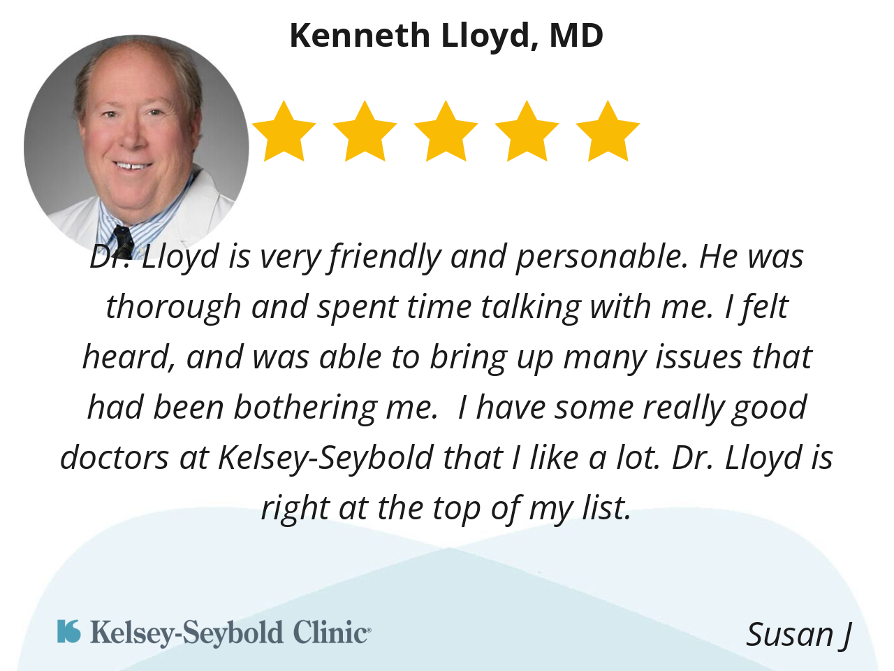Dr. Lloyd is very friendly and personable. He was thorough and spent time talking with me. I felt heard, and was able to bring up many issues that had been bothering me. I have some really good doctors at Kelsey-Seybold that I like a lot. Dr. Lloyd is right at the top of my list.