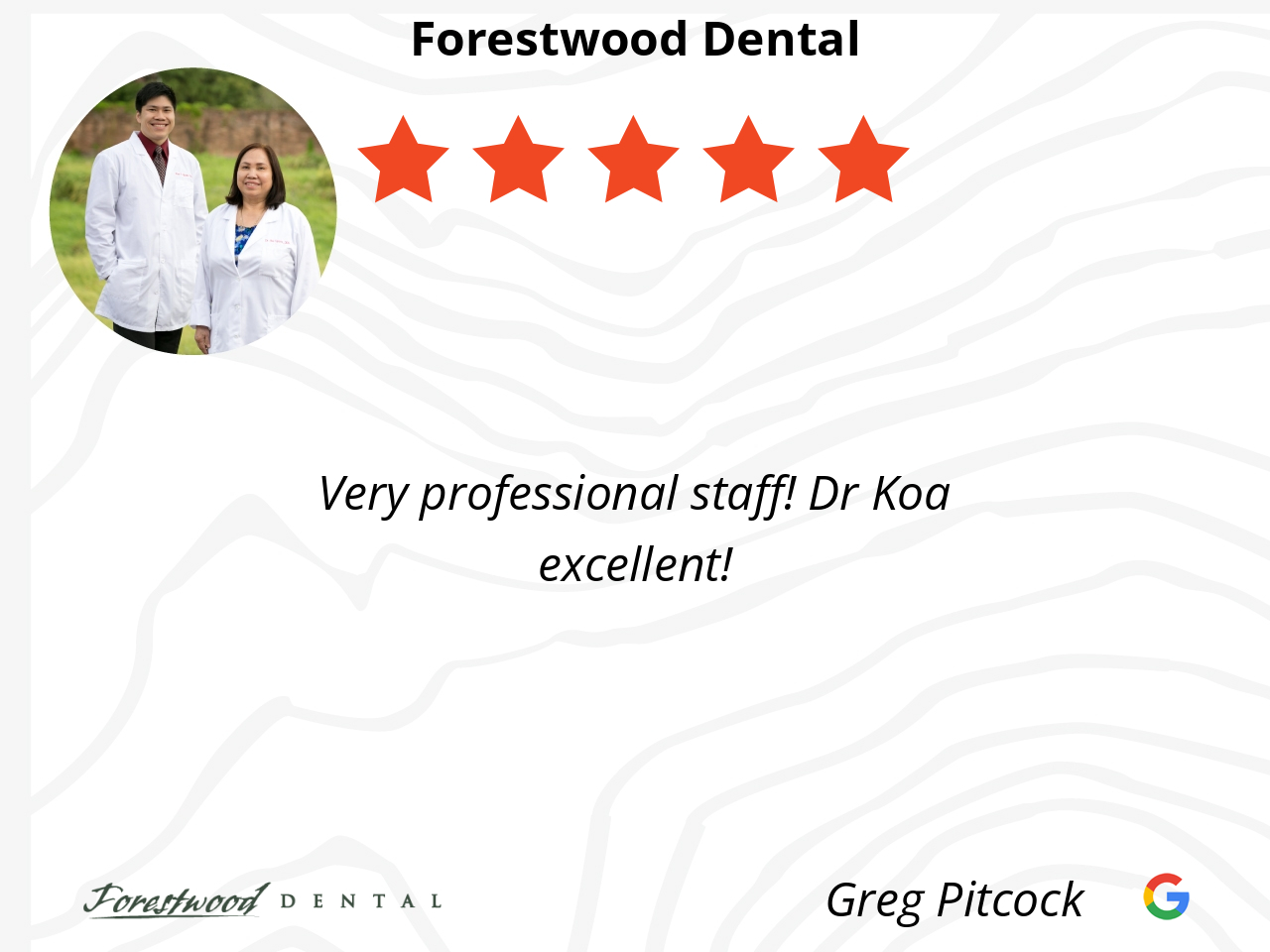 Your staff is the best. It's also quite and very professional I would recommend Forestwood Dental to anyone that needed a dentist