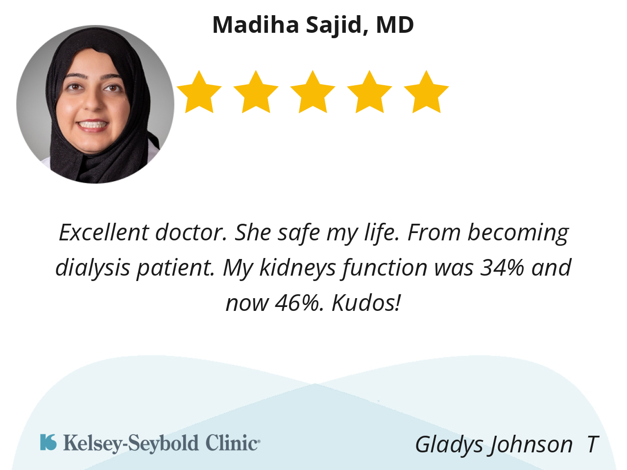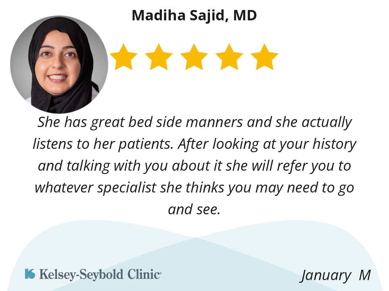 Doctor Sajid is a really good doctor, gentle and caring. I feel confident with her.