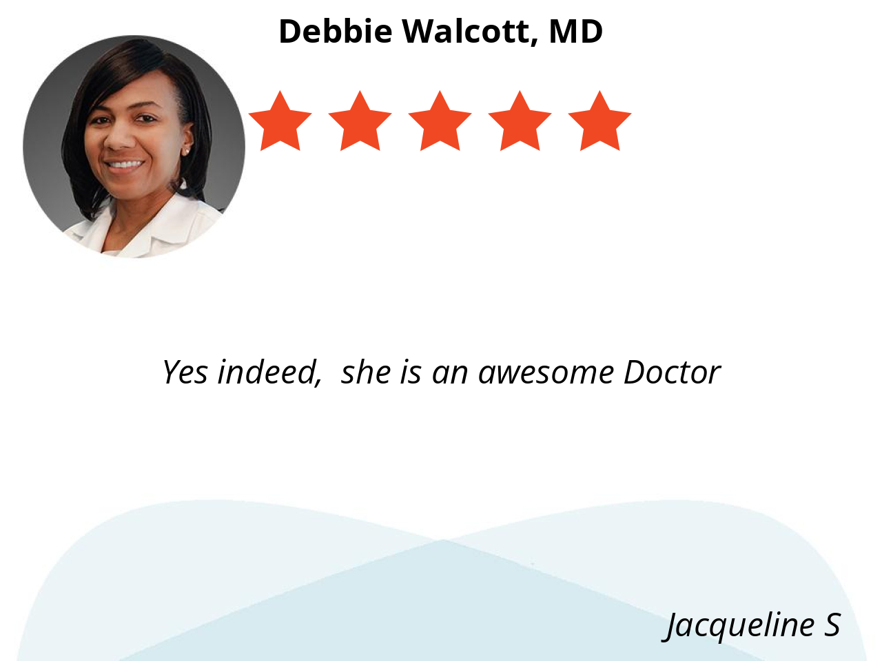 Dr. Walcott is an exceptional doctor. She's patient, kind, and deeply cares about my overall well-being! She's the best! Top-notch care!!