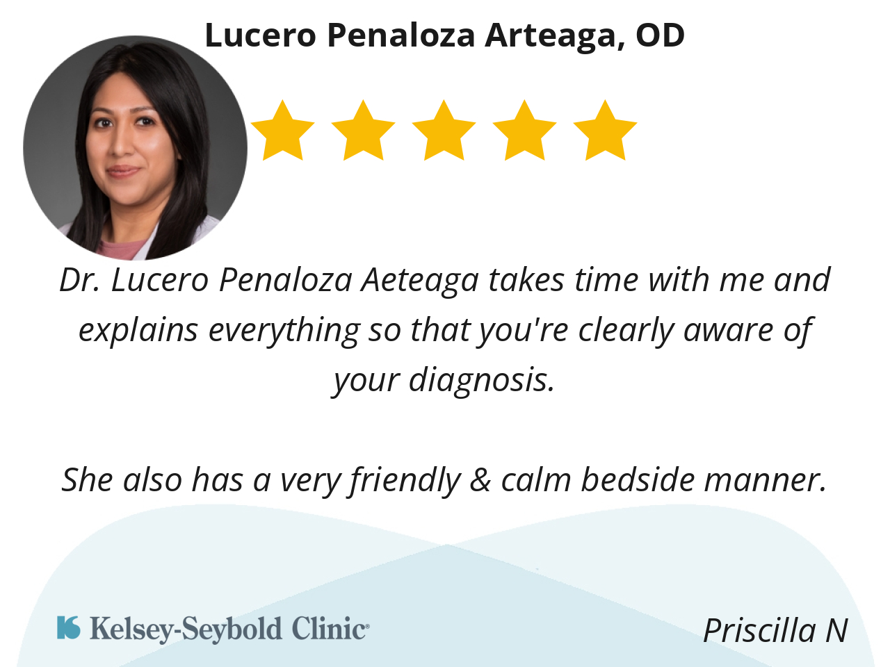 Dr. Lucero Penaloza Aeteaga takes time with me and explains everything so that you're clearly aware of your diagnosis.