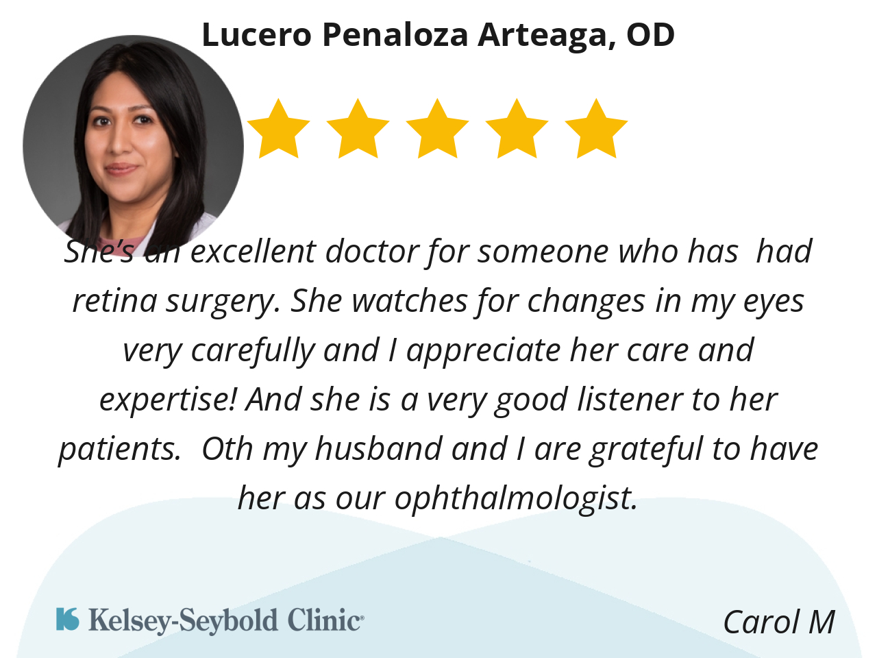 She’s an excellent doctor for someone who has had retina surgery. She watches for changes in my eyes very carefully and I appreciate her care and expertise! And she is a very good listener to her patients. Oth my husband and I are grateful to have her as our ophthalmologist.