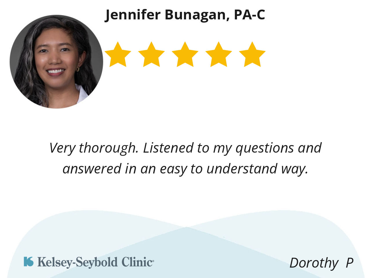 Ms. Bunagan is knowledgeable, professional and thorough. Her visit summary and notes are some of the best.