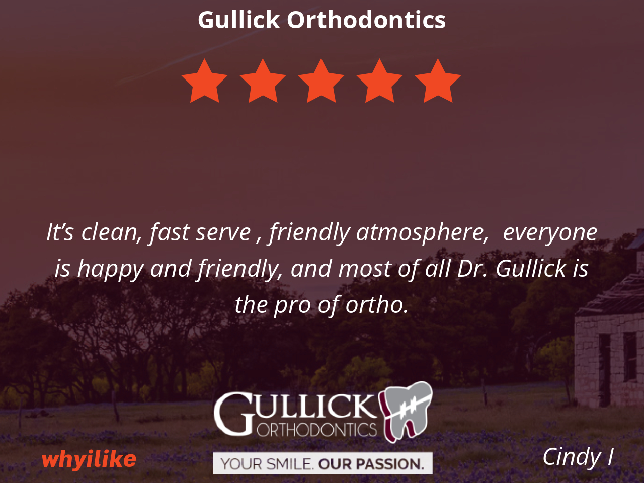I like Gullick Orthodontics because they make you feel like you’re family! As soon as you walk in the door, you receive a warm welcome! Excited that I was referred to this wonderful practice!