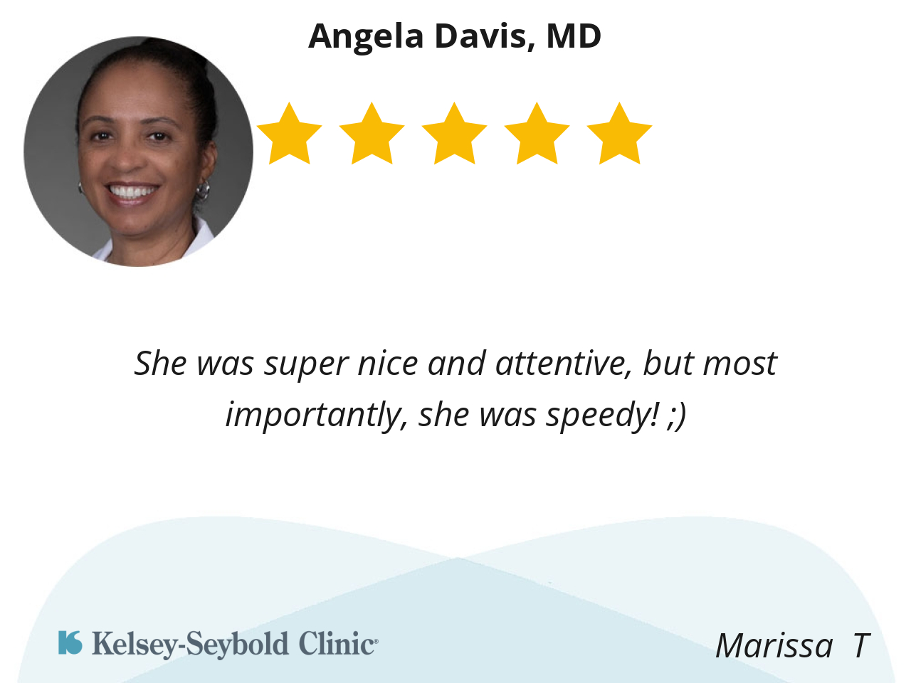 I like Dr Davis very much. She's very thorough when checking my skin from head to toe. Literally. She's done a lot of procedures on my skin and I trust her very much going forward. Thank you Dr Davis and Kelsey-Seybold.
