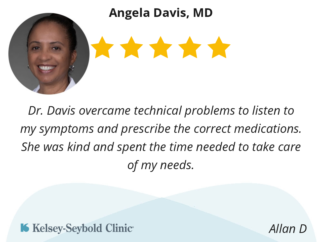 Dr. Davis is very knowledgeable and has great bed side manner even through virtual visits. She’s thorough and isn’t rushed. And I really appreciate the opportunity of the virtual visit because schedules are busy and this is so flexible.