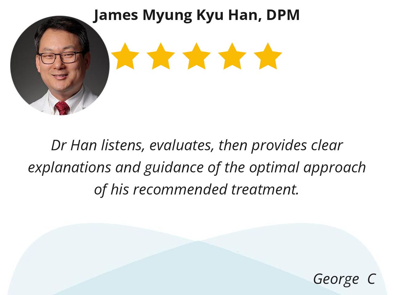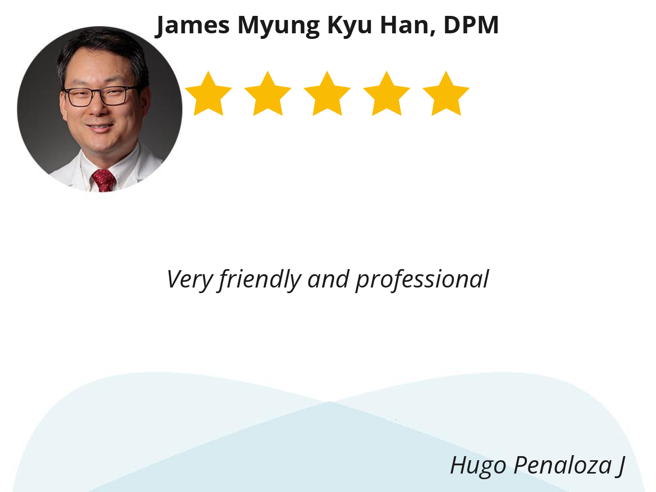 Dr. Han has always kept me informed on the status of my feet with regards to my diabetic condition. Dr. Han is professional and courteous in our conversations.
