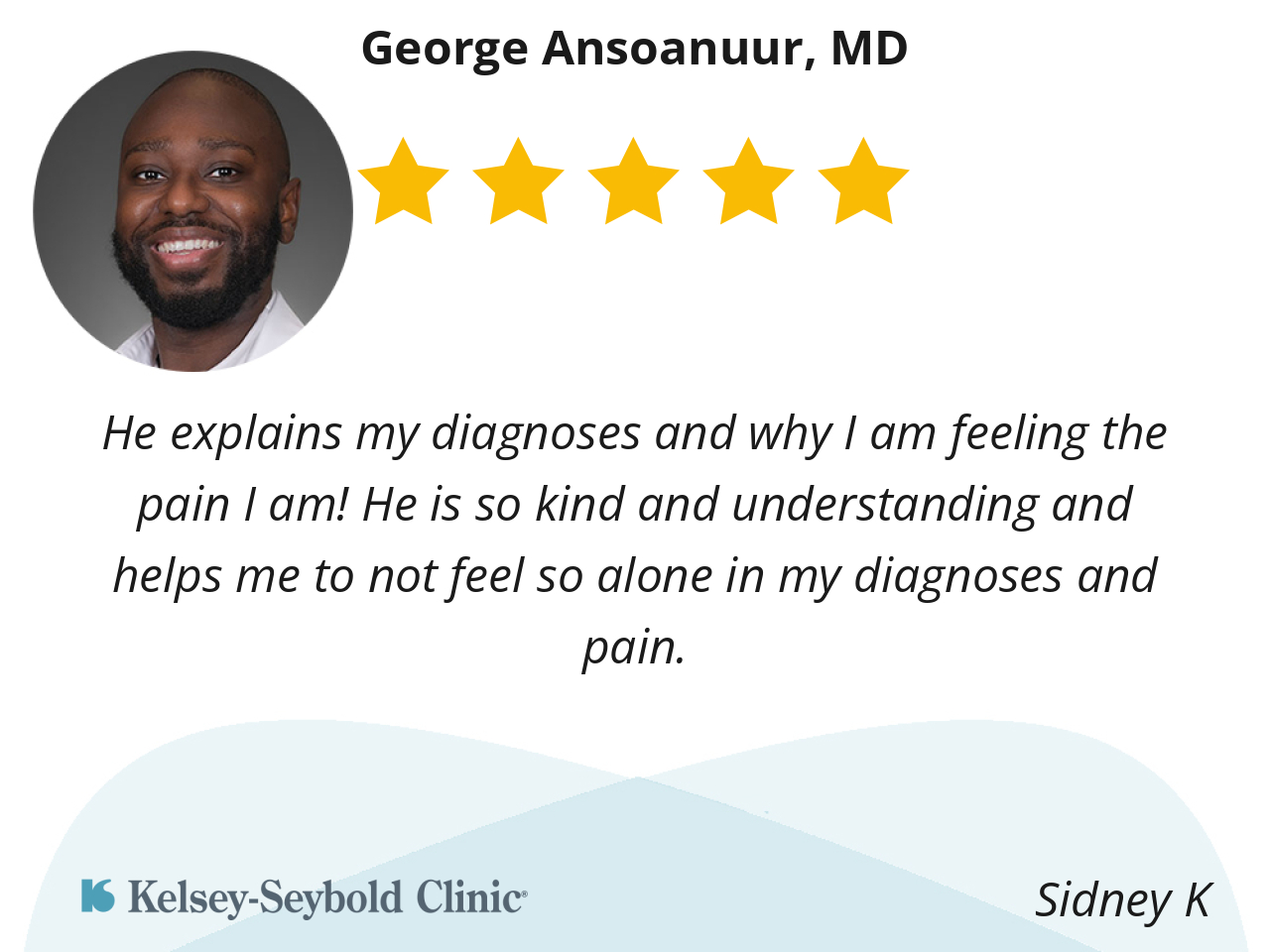 I like Doctor George Ansoanuur because he knows what he's doing, he listens to what you're saying and he takes good care of me and what's going on with me