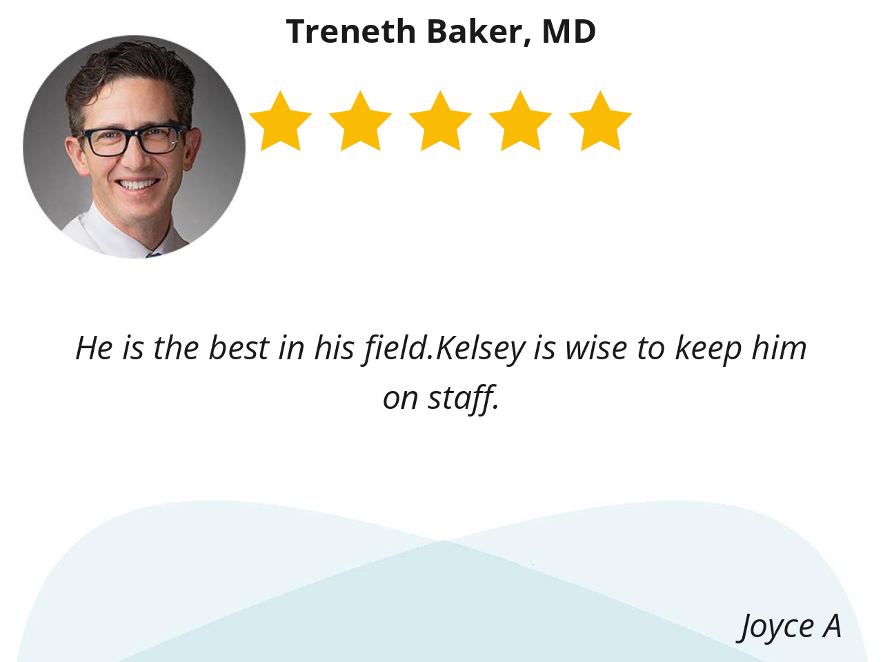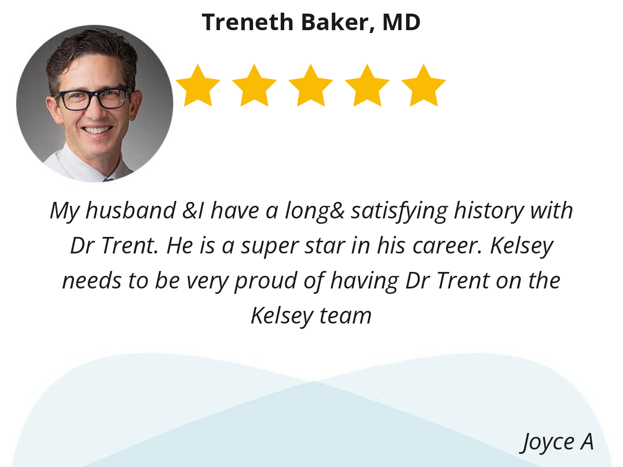 My husband &I have a long& satisfying history with Dr Trent. He is a super star in his career. Kelsey needs to be very proud of having Dr Trent on the Kelsey team