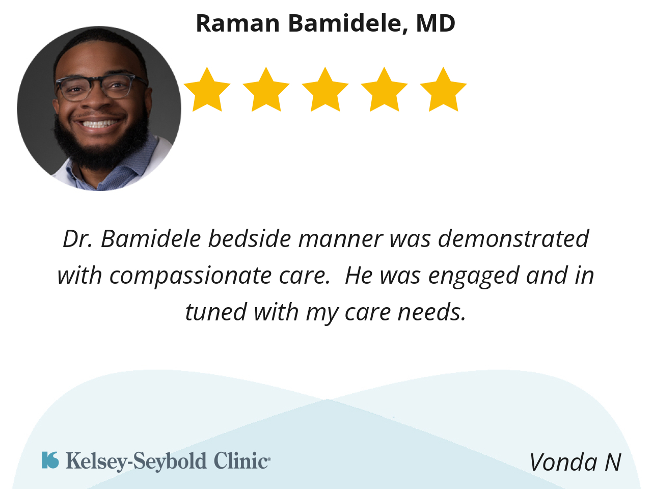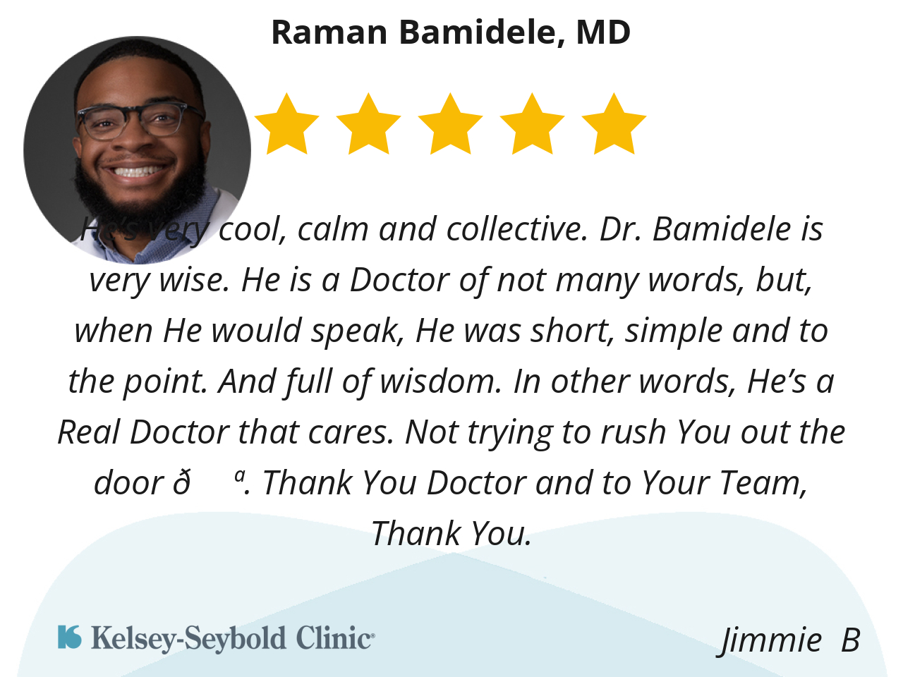 Dr Bamidele is very attentive and he carefully listens to his patients and figures out what's best for their medical needs.
