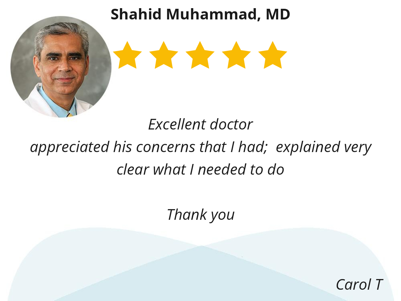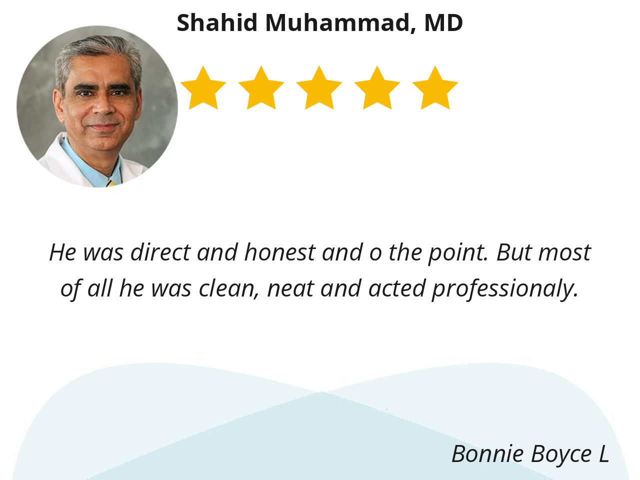 Dr. Muhammad was very thorough and professional. He listened and answered all my questions.