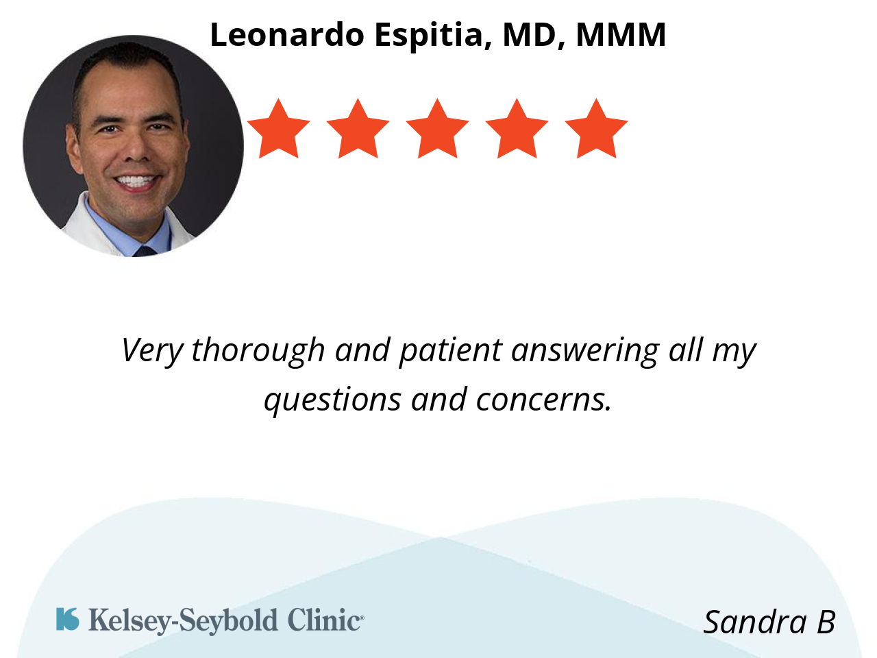 I have been very satisfied with Dr. Espitia, I have seen him for over 10 years,