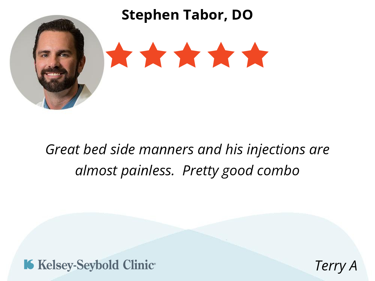 Great bed side manners and his injections are almost painless. Pretty good combo