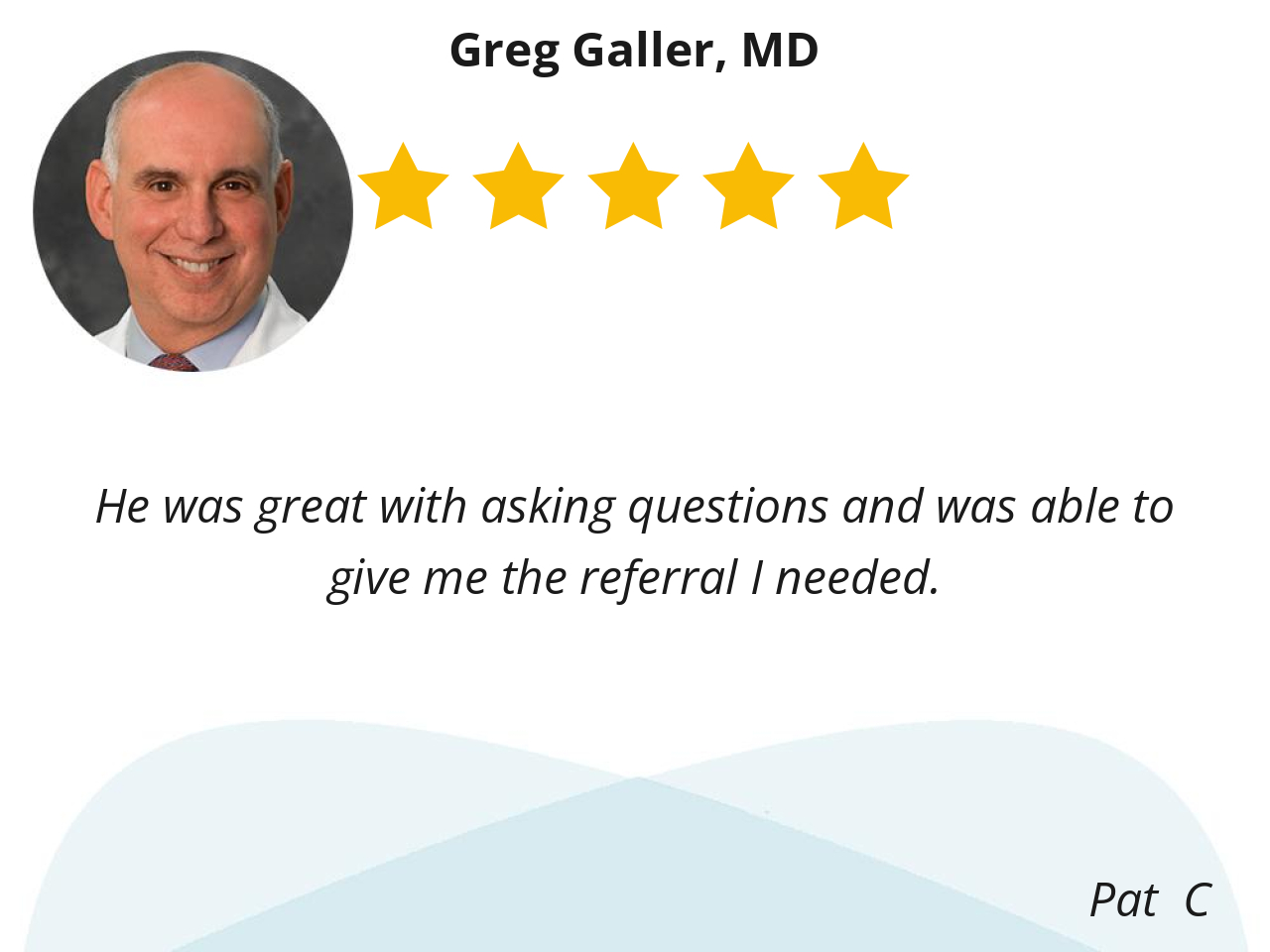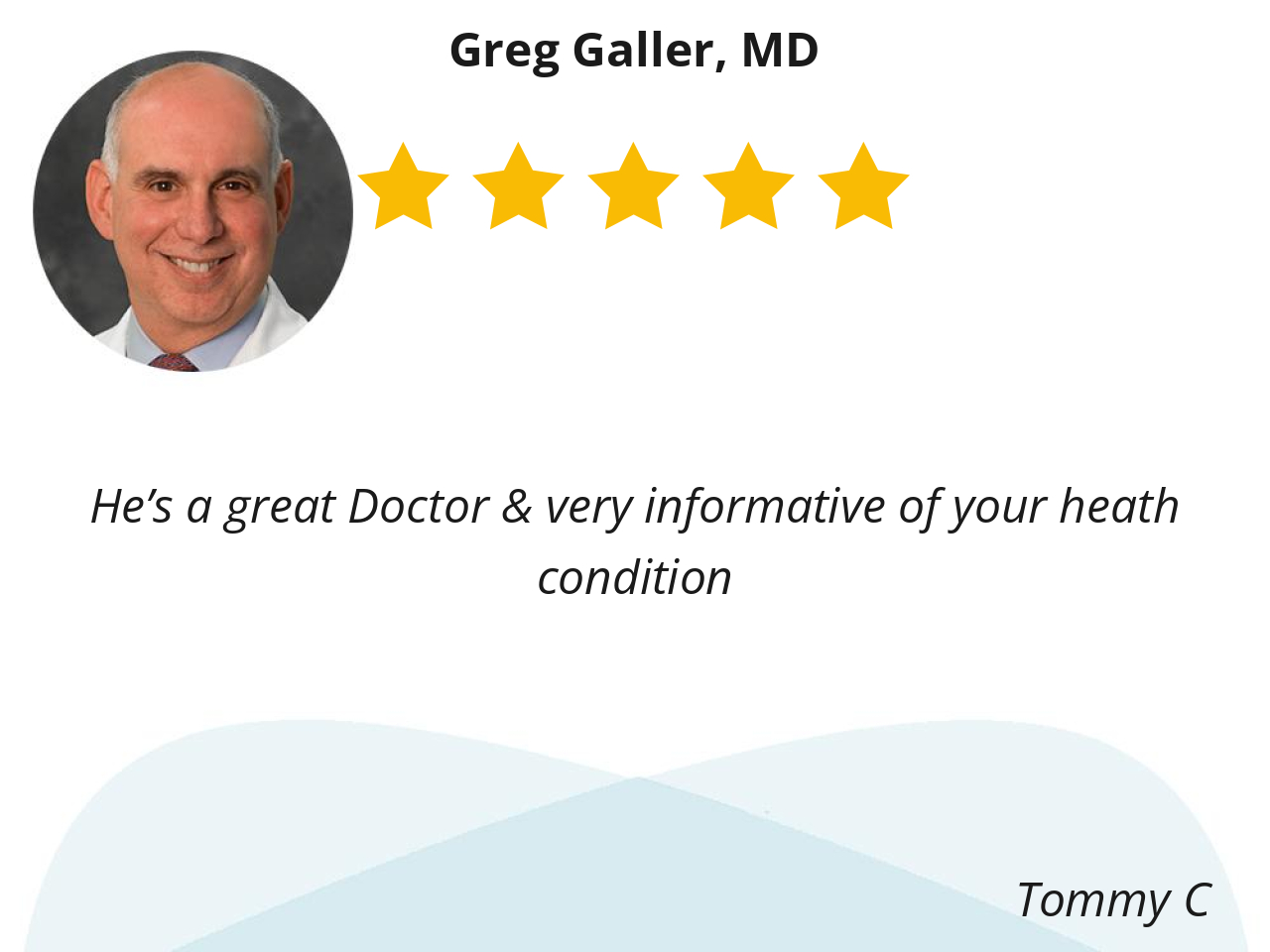 Dr. Greg Galler is very knowledgeable and professional. It’s always pleasant to see him and to discuss my medical status and necessary treatment options.