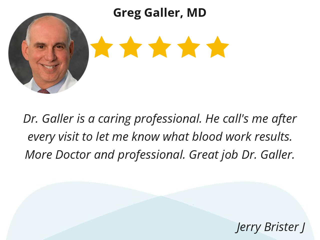 Dr. Galler is a caring professional. He call's me after every visit to let me know what blood work results. More Doctor and professional. Great job Dr. Galler.