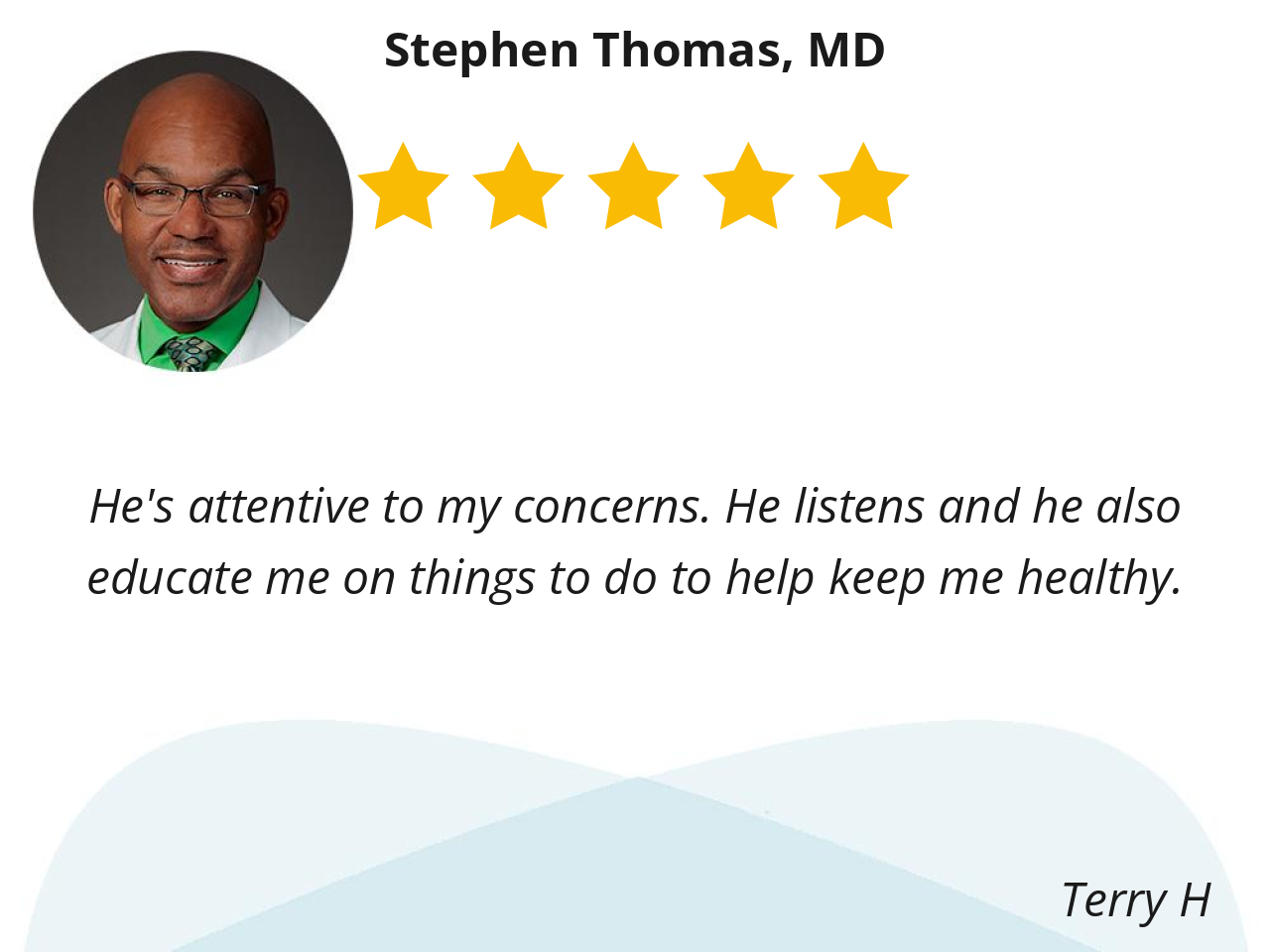 Dr. Thomas is very patient kind and knowledgeable, he’s the best doctor I have ever had.
