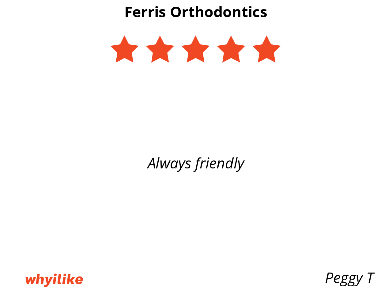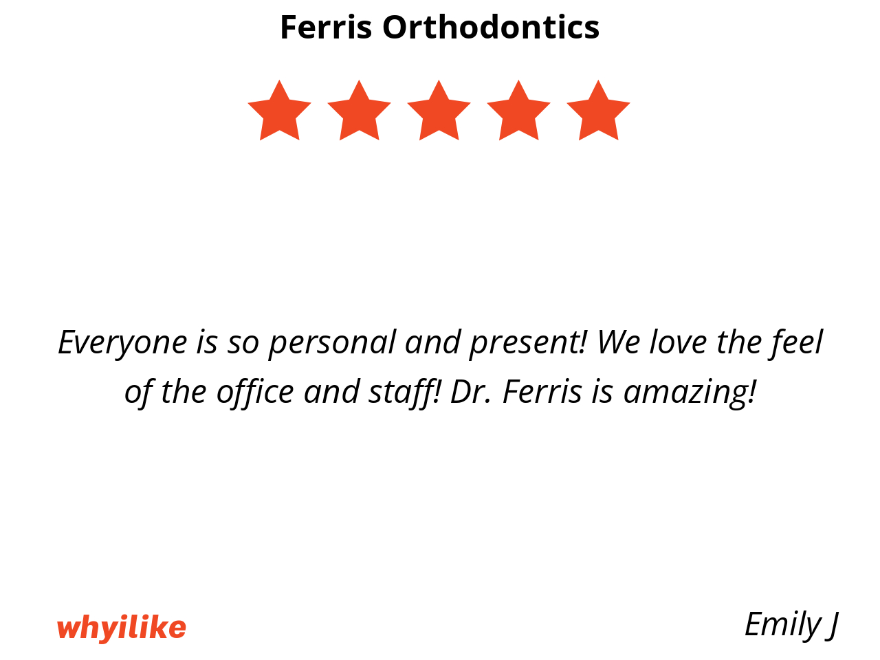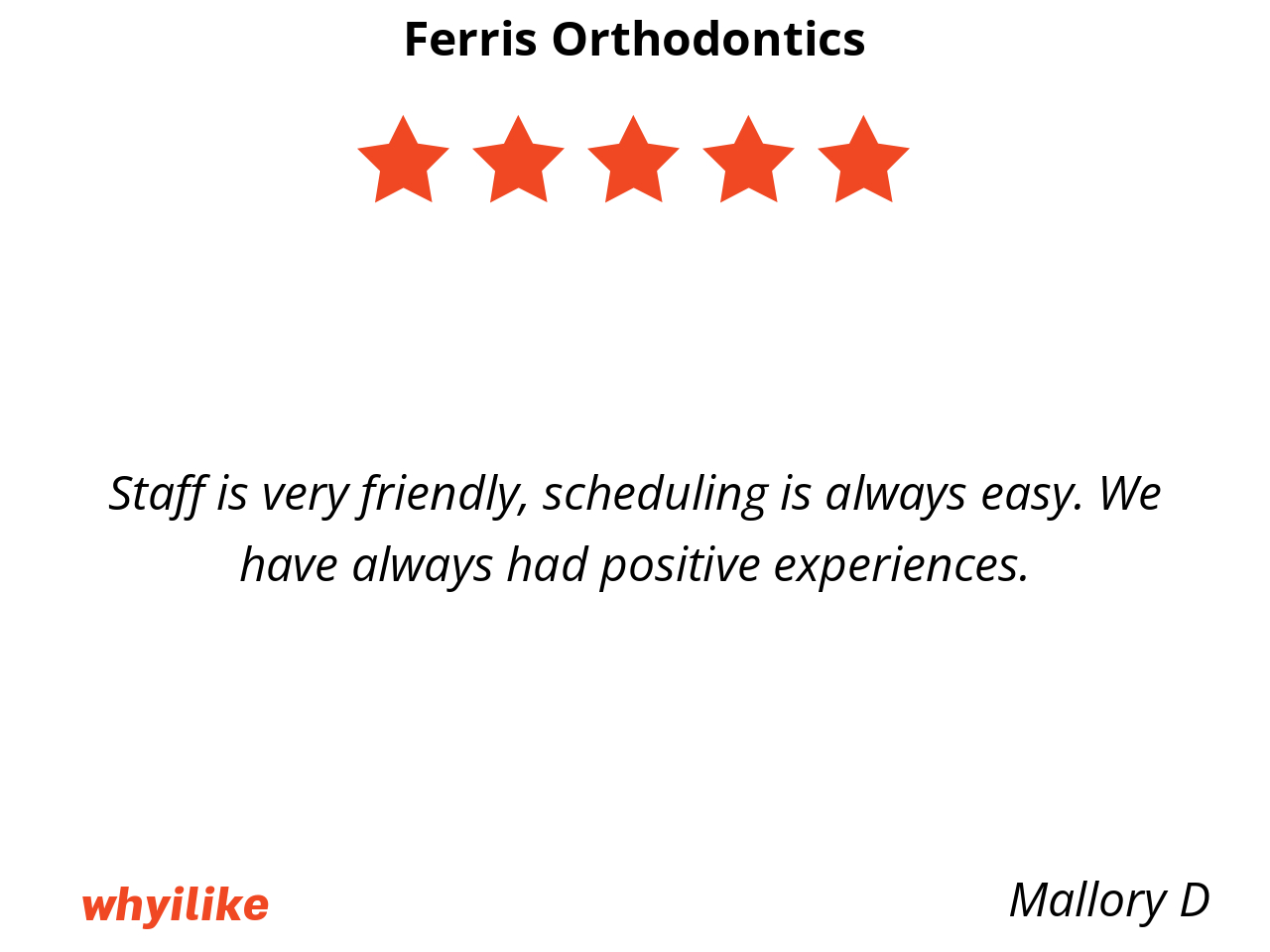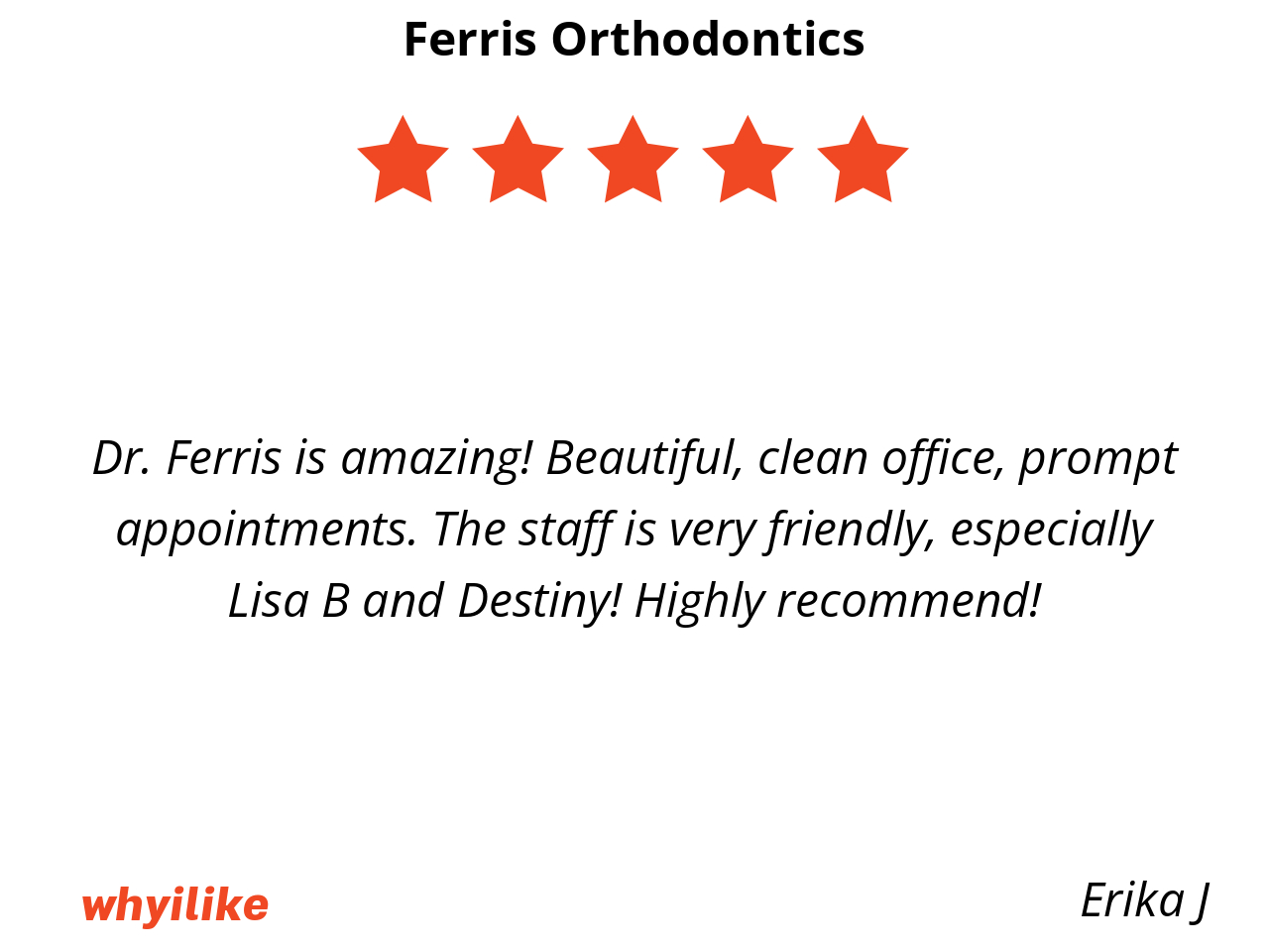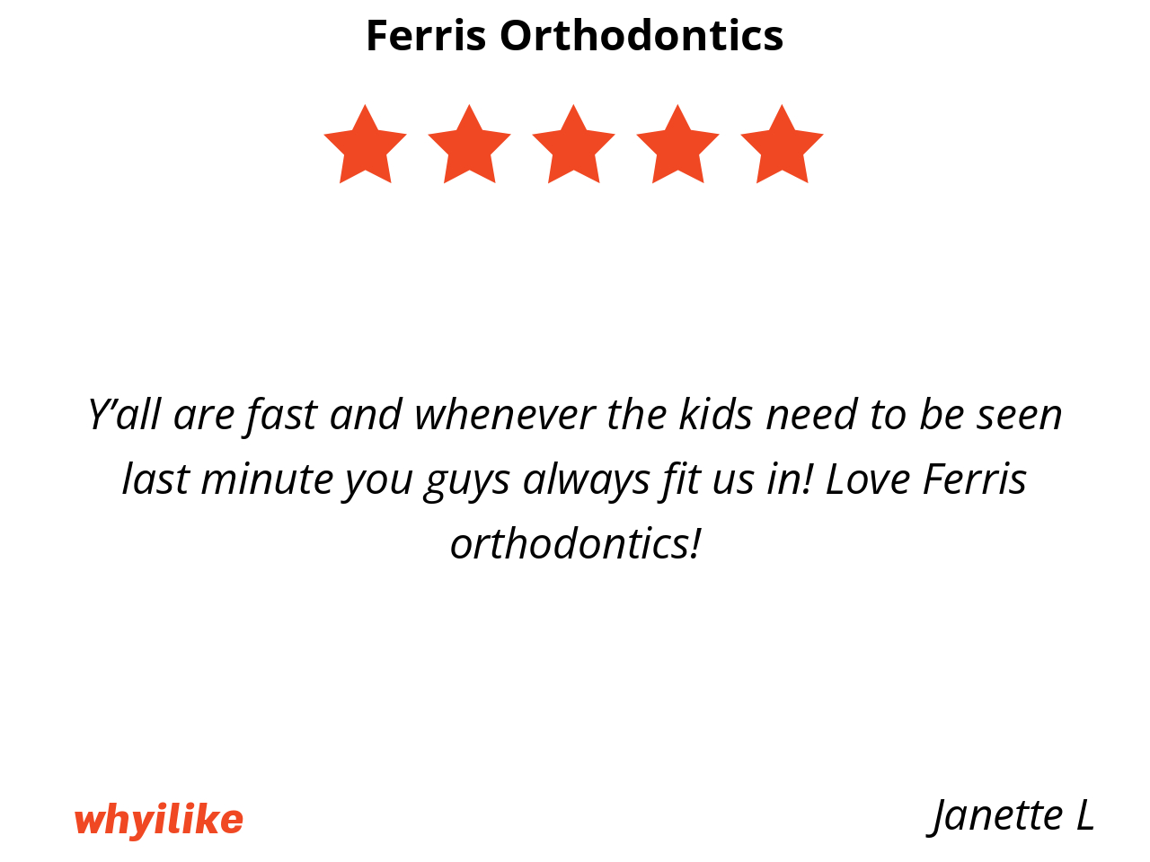 Y’all are fast and whenever the kids need to be seen last minute you guys always fit us in! Love Ferris orthodontics!