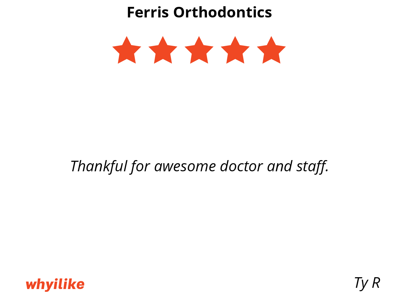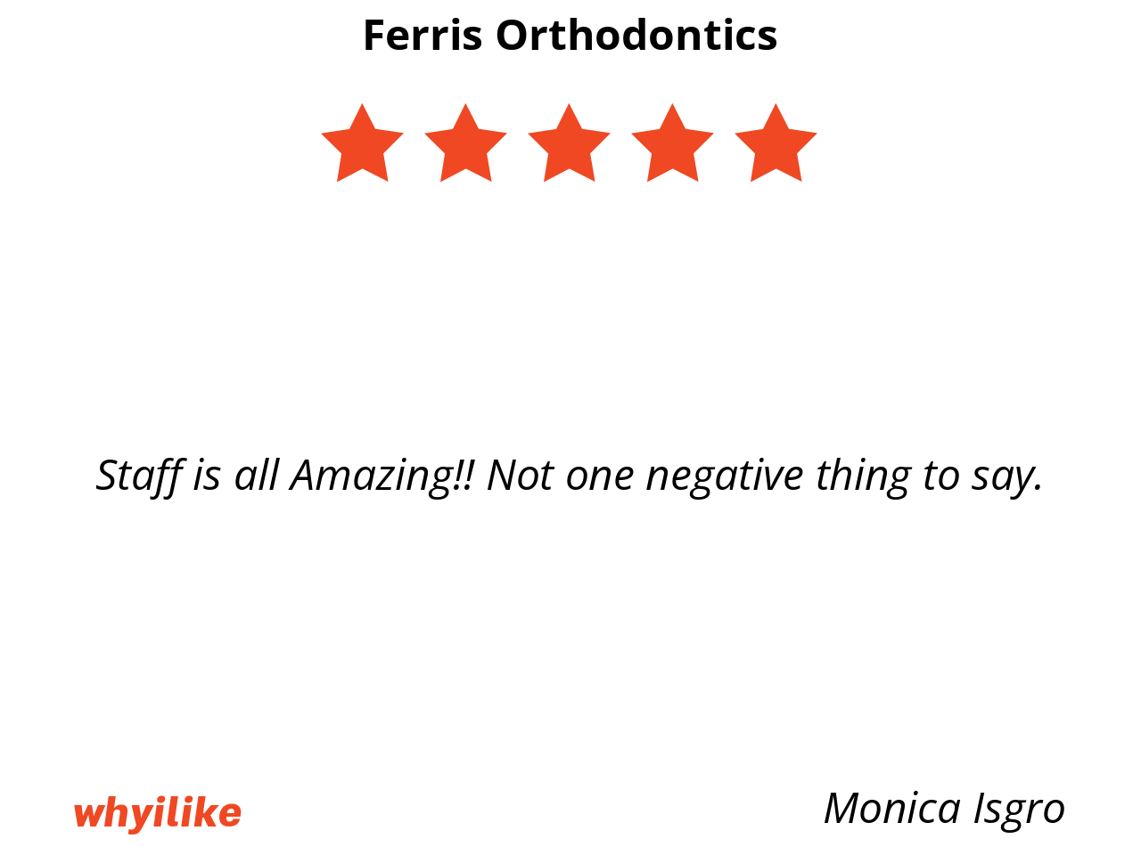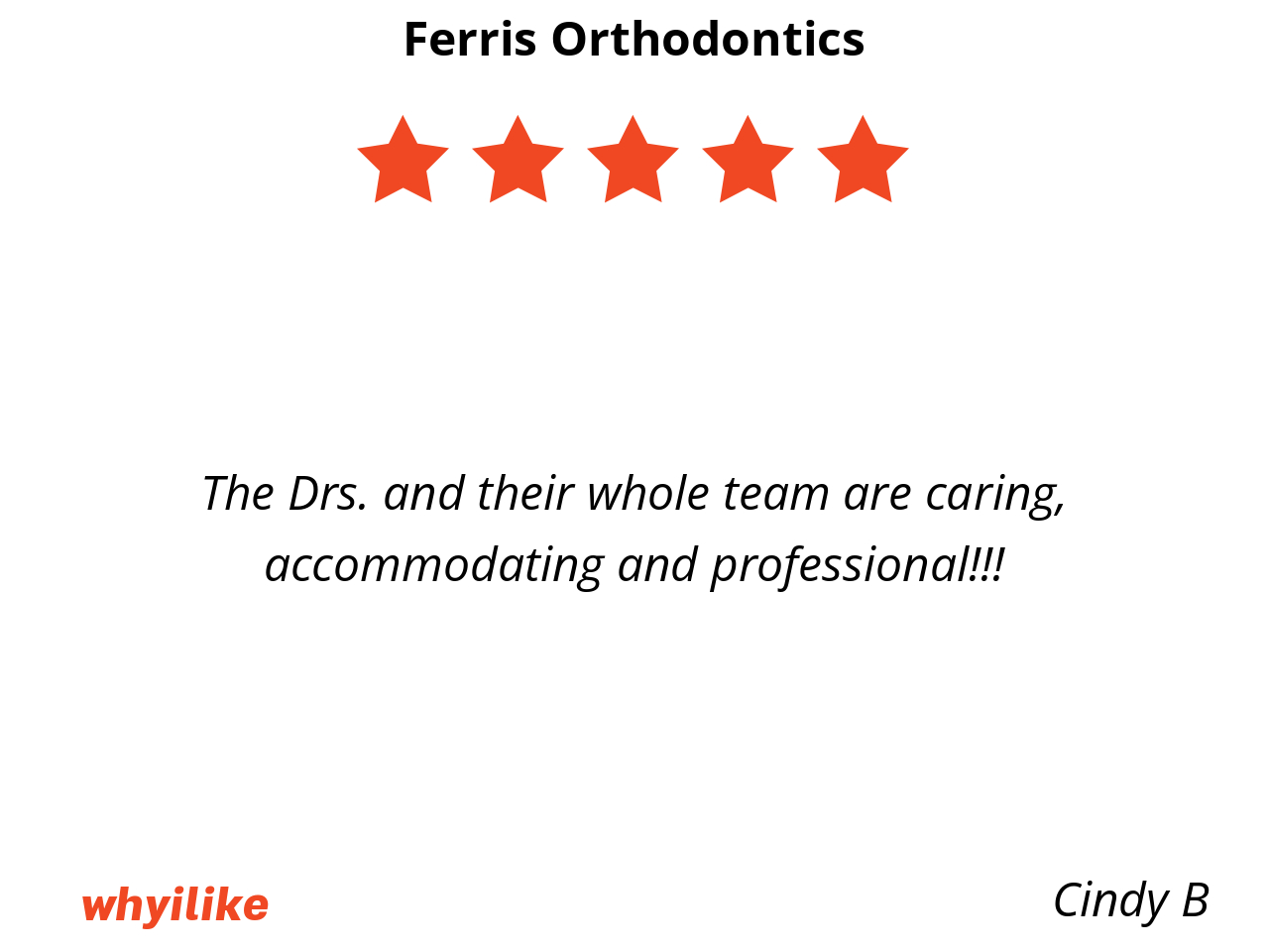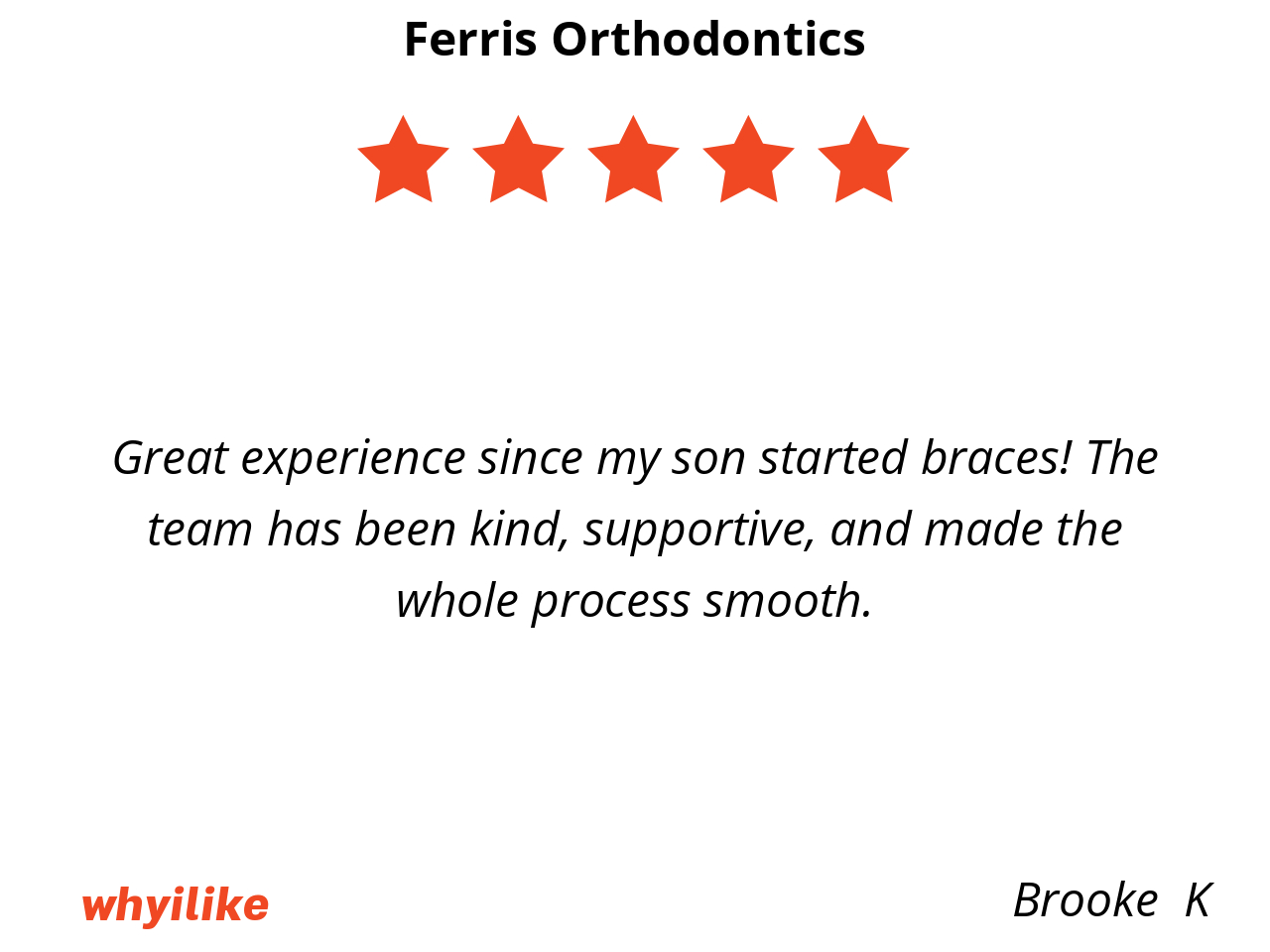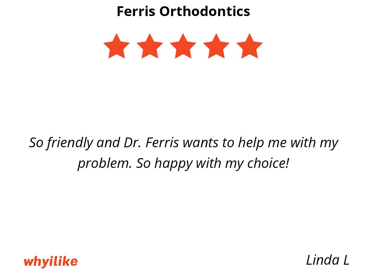 Y’all are fast and whenever the kids need to be seen last minute you guys always fit us in! Love Ferris orthodontics!