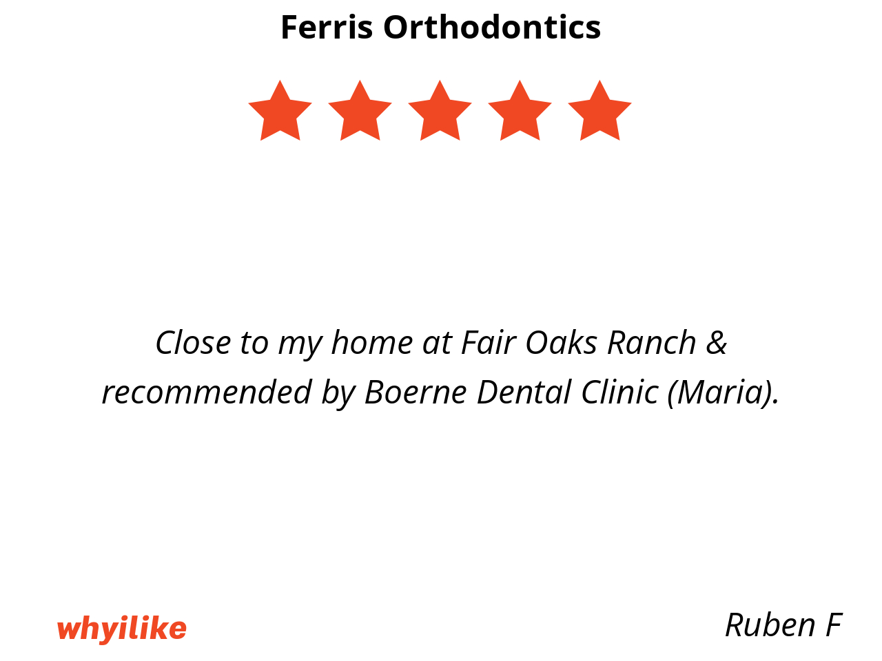 Close to my home at Fair Oaks Ranch & recommended by Boerne Dental Clinic (Maria).