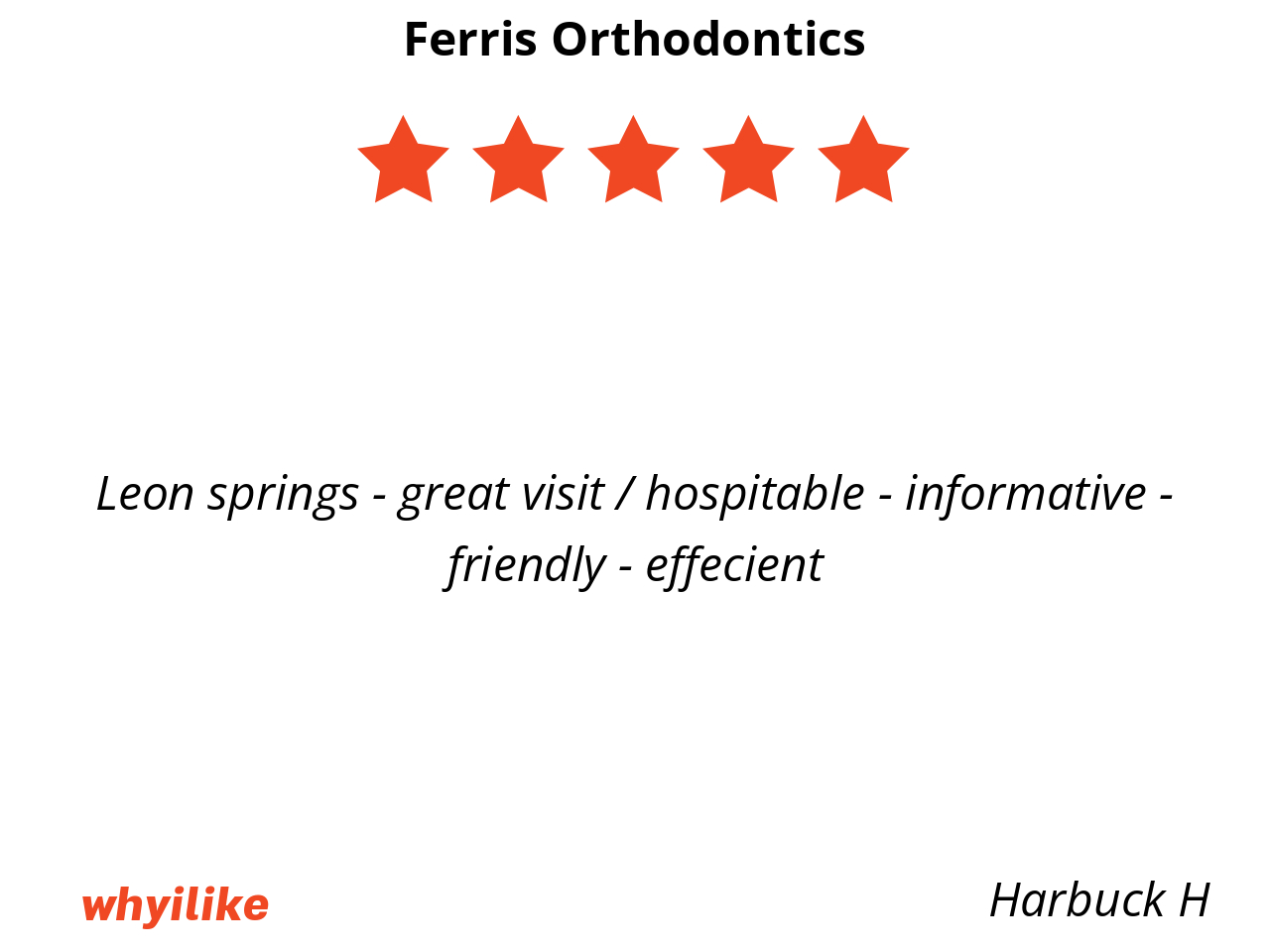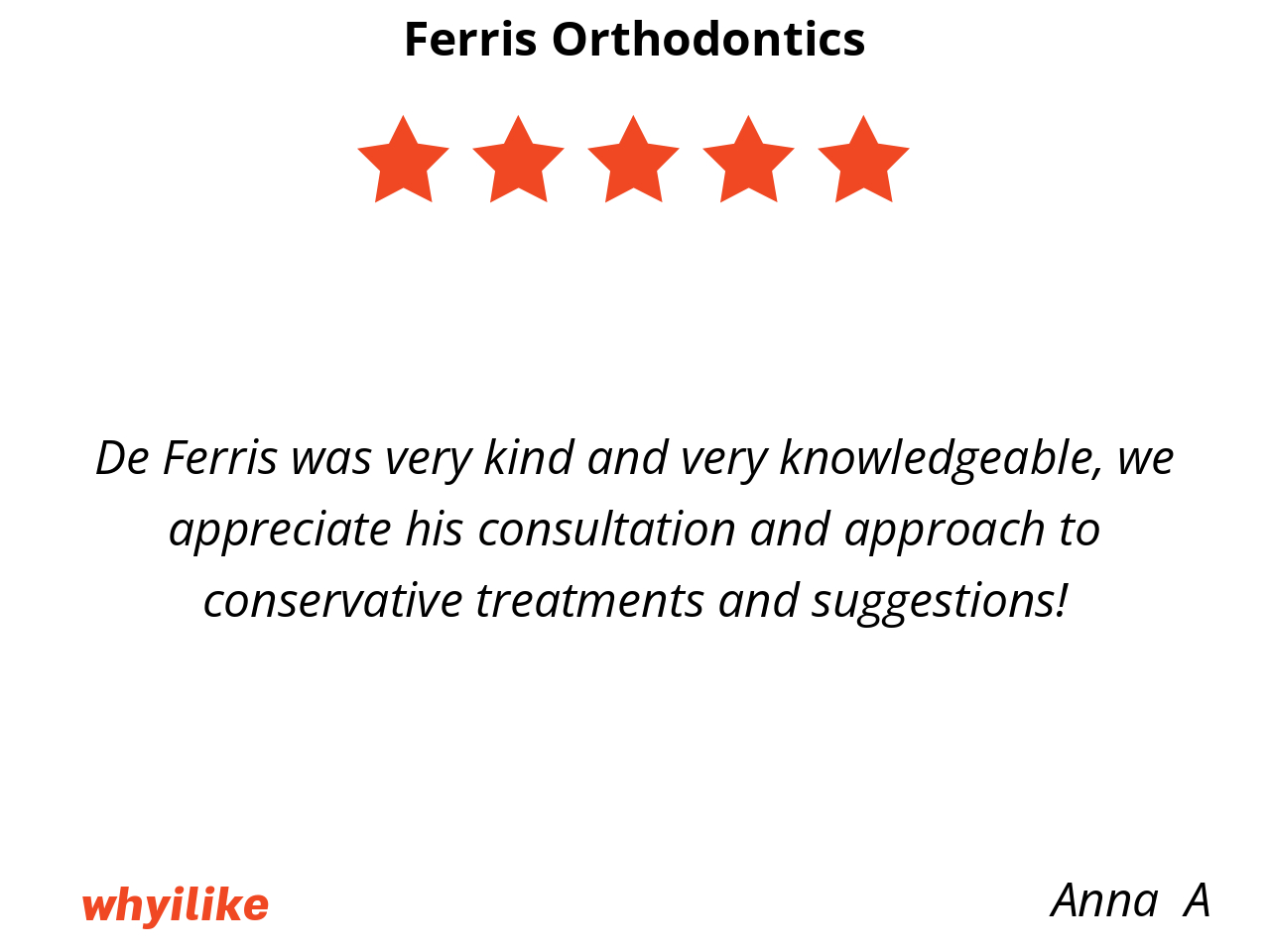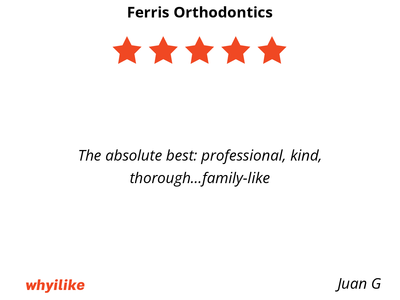 Our family has been going to Ferris Ortho for about 15 years. 6 sets of braces later, we are approaching the end of the last set of braces we are expecting to have. When we go for appts, it feels like we are surrounded by family & friends. Now I’m wondering if I’ll feel the need to pop in and visit after this journey is over! Love this group! So professional, caring and we have been very please with the results of our new smiles. We’ve gone to both Leon Springs & Boerne locations.