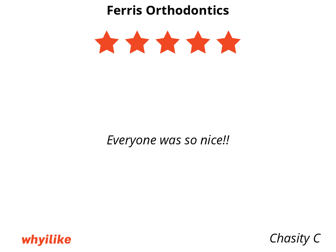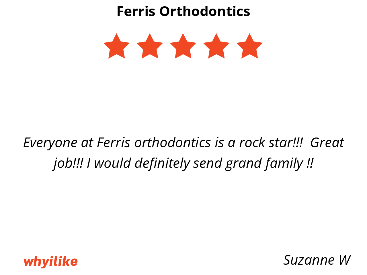 Everyone at Ferris orthodontics is a rock star!!! Great job!!! I would definitely send grand family !!