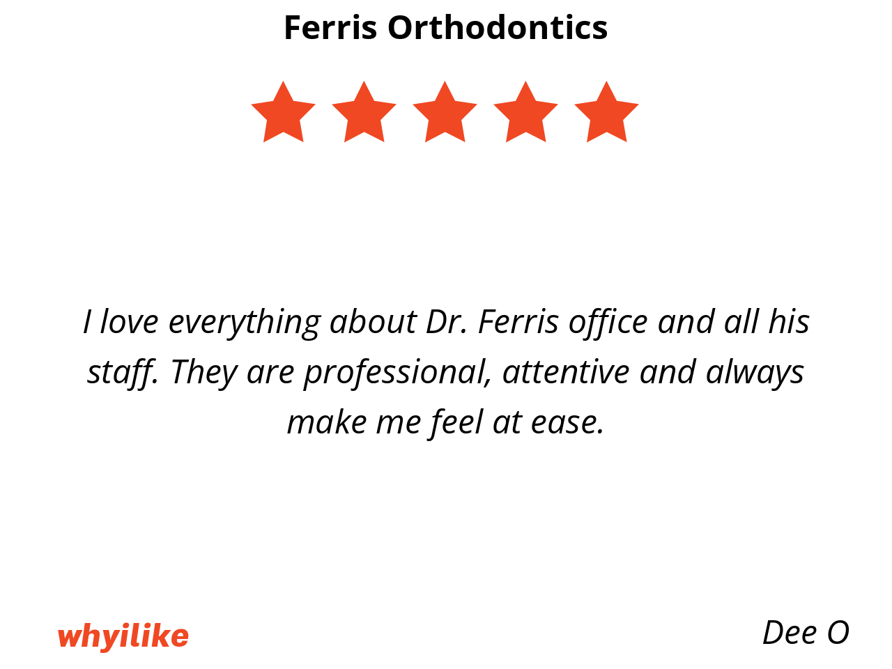 I love everything about Dr. Ferris office and all his staff. They are professional, attentive and always make me feel at ease.
