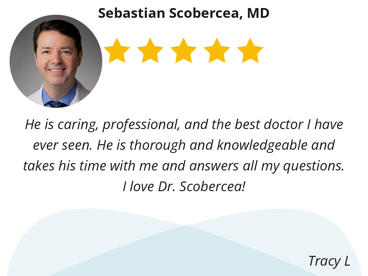 Dr. Scobercea is committed to ensuring his patients receive the care needed to improve their health. He is detailed and takes time to educate his patients about the steps necessary for maintaining a quality life. I appreciate his honesty, practicality, and thoroughness.
