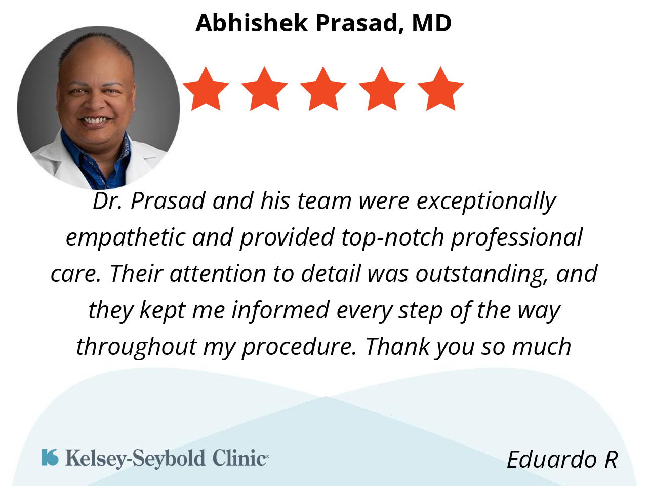 Dr. Prasad and his team were exceptionally empathetic and provided top-notch professional care. Their attention to detail was outstanding, and they kept me informed every step of the way throughout my procedure. Thank you so much