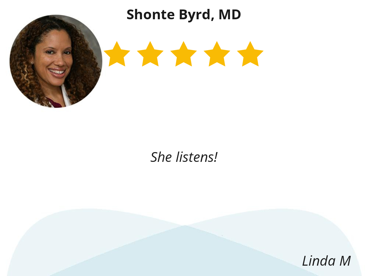 Dr. Shonte Byrd asks the right questions, she listens, she’s empathetic, and professional.