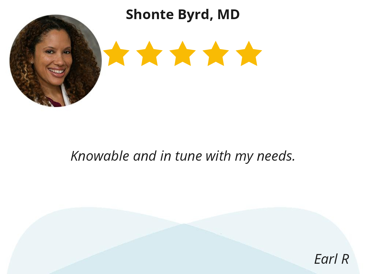 Dr. Shonte Byrd asks the right questions, she listens, she’s empathetic, and professional.